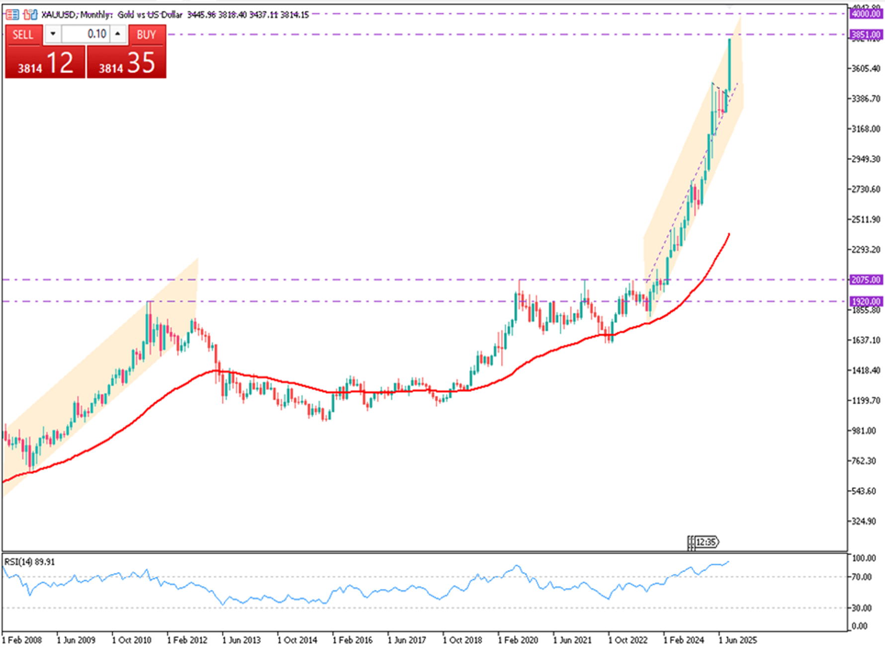 Gold surged past $3,800 in Asian trading Monday, hitting a record high as in-line U.S. inflation data boosted expectations of further Fed rate cuts. Lower yields and persistent geopolitical tensions continue to fuel safe-haven demand. Traders now await remarks from Fed officials, with any hawkish signals likely to lift the dollar and weigh on gold.
