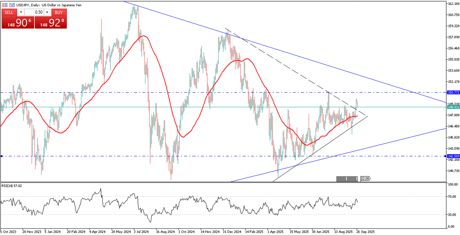 The yen strengthened to 149 per dollar on Monday, lifted by U.S. shutdown concerns and a softer greenback. Markets await key U.S. data for Fed signals, while Japan eyes the Tankan survey and other releases. BOJ minutes showed openness to rate hikes, with two recent dissents hinting at possible tightening. The ruling LDP votes on October 4 to replace outgoing Prime Minister Shigeru Ishiba.