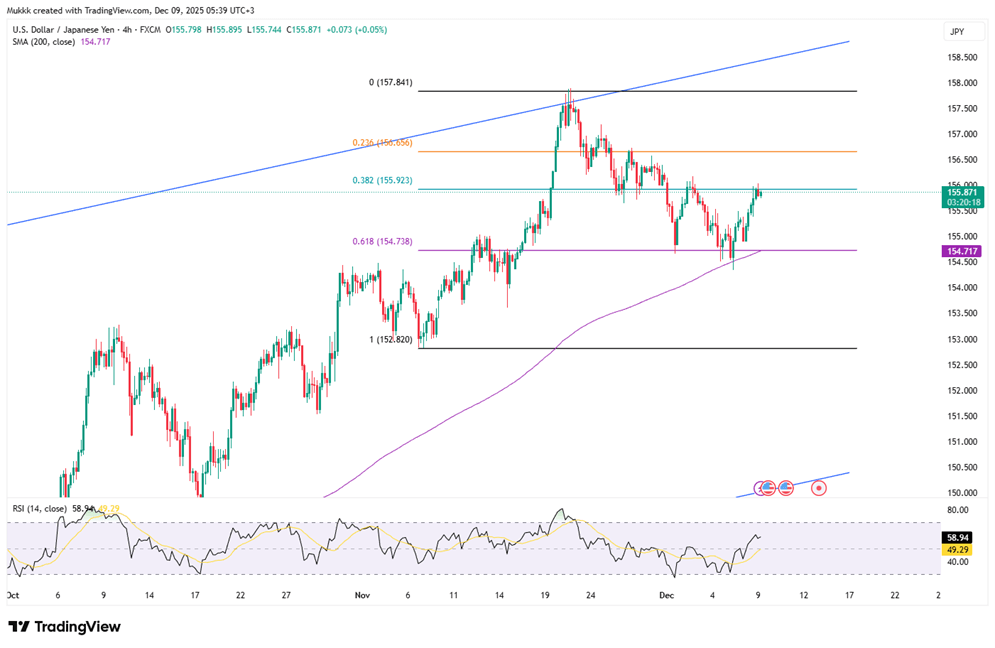 USD/JPY meets resistance at 156.20, with solid support at 155.30.