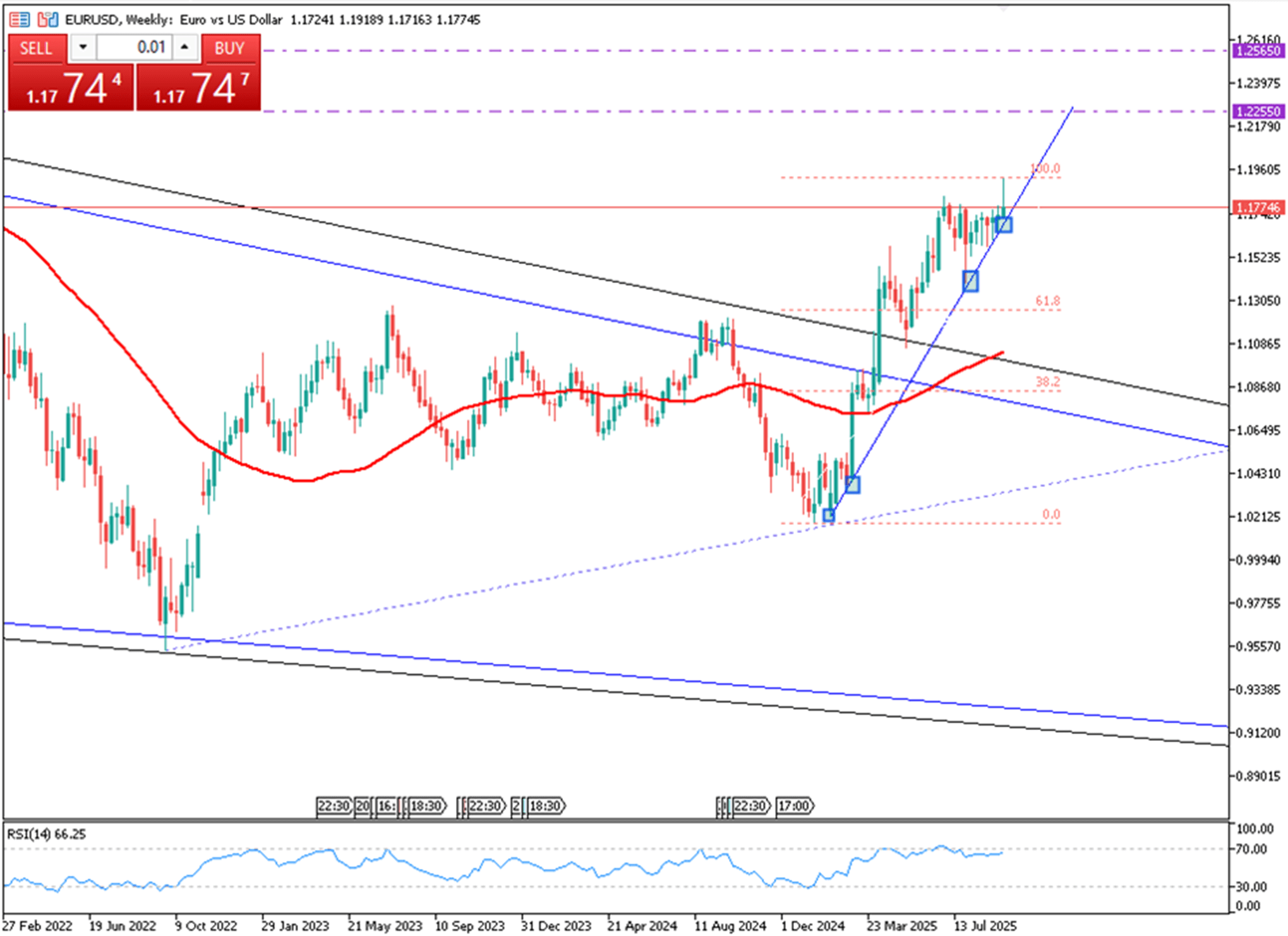 The euro traded near $1.18, just below four-year highs, as markets anticipated broad monetary easing to support the labor market. The dollar firmed after the Fed’s 25-bps cut, with another 50 bps expected by year-end. Chair Powell called the move “risk management.” The ECB held rates steady, warning of risks from tariffs, inflation, and fiscal policy, while Eurozone inflation eased to 2.0% in August.