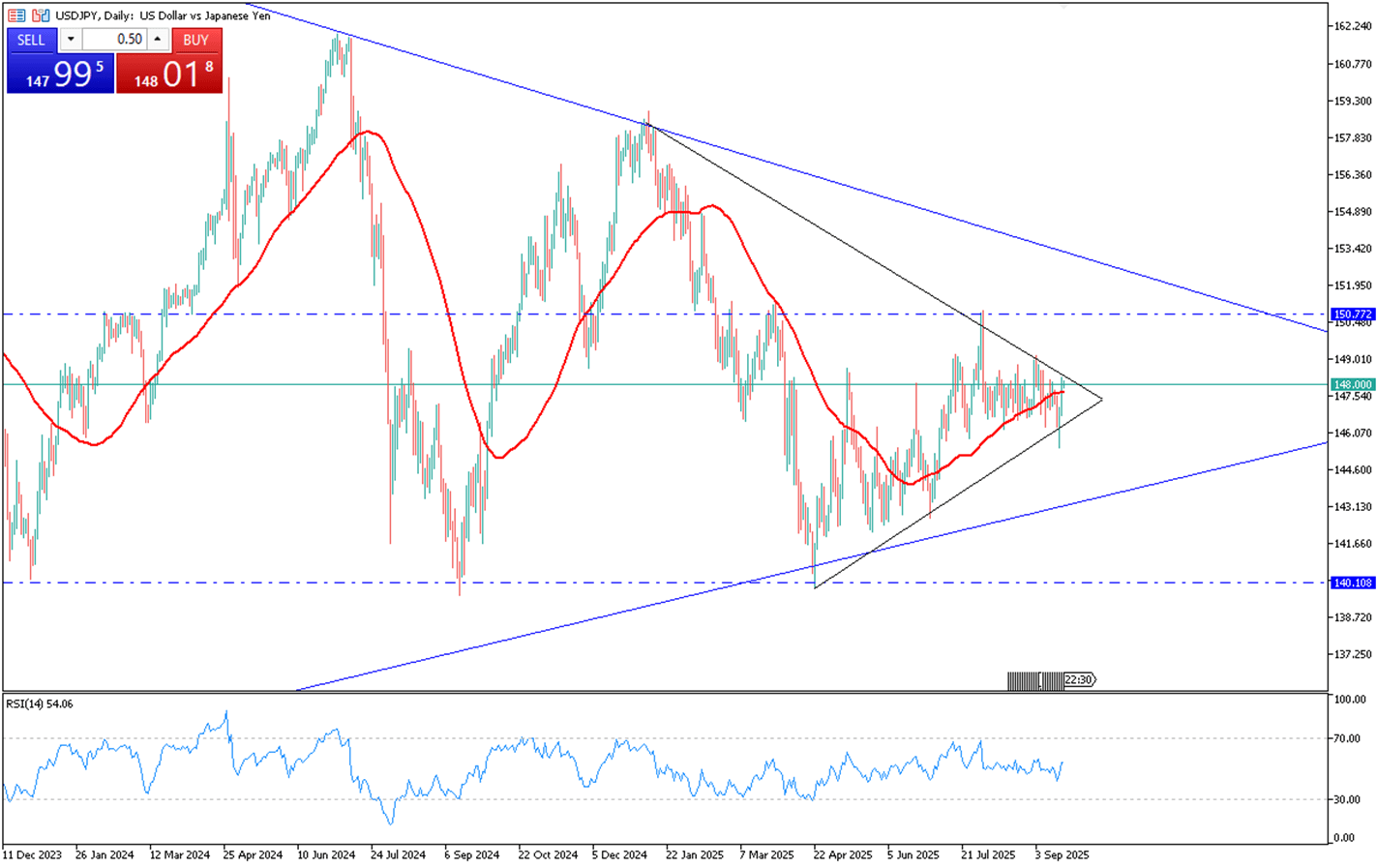 The yen traded near 148 per dollar on Friday as markets awaited the Bank of Japan’s policy decision, with rates expected to stay unchanged. A 25-bps hike is priced for October on signs of economic resilience. Core inflation eased to 2.7% in August, while the yen fell 1% over two sessions as the dollar firmed after the Fed’s quarter-point cut, described as a cautious labor-market measure.