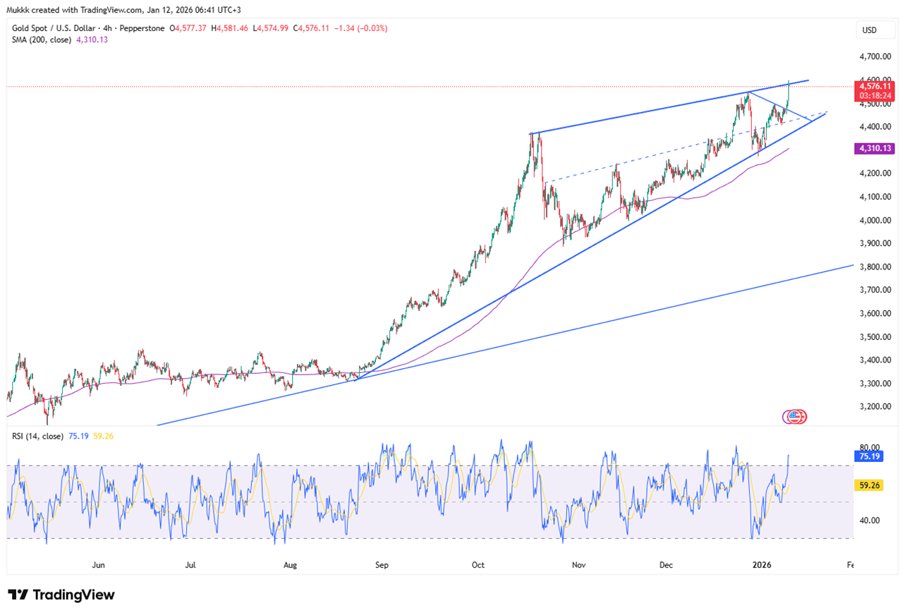 Gold jumped more than 1% to above $4,570 per ounce on Monday, hitting a fresh record amid rising geopolitical tensions and growing concerns over the Federal Reserve’s independence. Iran’s parliament speaker warned the US and Israel against intervention following President Trump’s threats of strikes, as protests in Iran reportedly left hundreds dead. Separately, Fed Chair Jerome Powell said he had been threatened with criminal charges over his Senate testimony last June, calling it part of Donald Trump’s pressure campaign to push the central bank toward rate cuts.