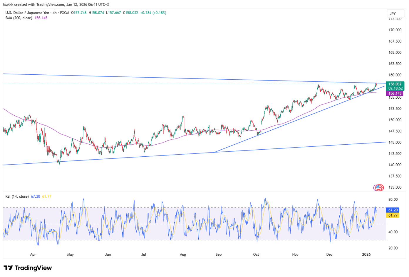 Technically, resistance stands near 158.70, while support is firm at 157.50.