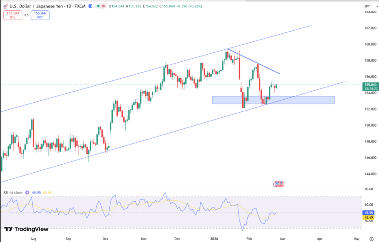 Markets remained cautious as a new 10% U.S. global tariff weighed on risk sentiment. The euro and pound stayed under pressure near recent lows, while the yen rebounded on renewed speculation around Bank of Japan tightening.