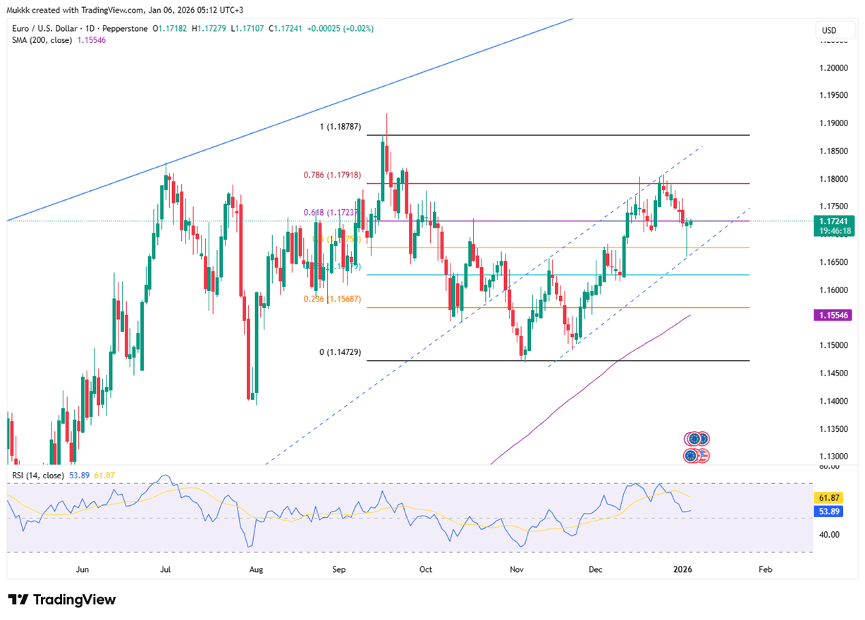 The euro dropped below $1.17, reaching its lowest level since early December and marking its steepest decline since October. This slide followed the U.S. capture of Venezuelan President Nicolás Maduro, as President Trump’s remarks on a temporary U.S. administration in Venezuela and increased energy involvement sparked a rush to the dollar. Investors are now pivoting toward Friday’s U.S. jobs report and upcoming inflation data, while steady ECB signals and a potential shift in Fed leadership add to the market's uncertainty.