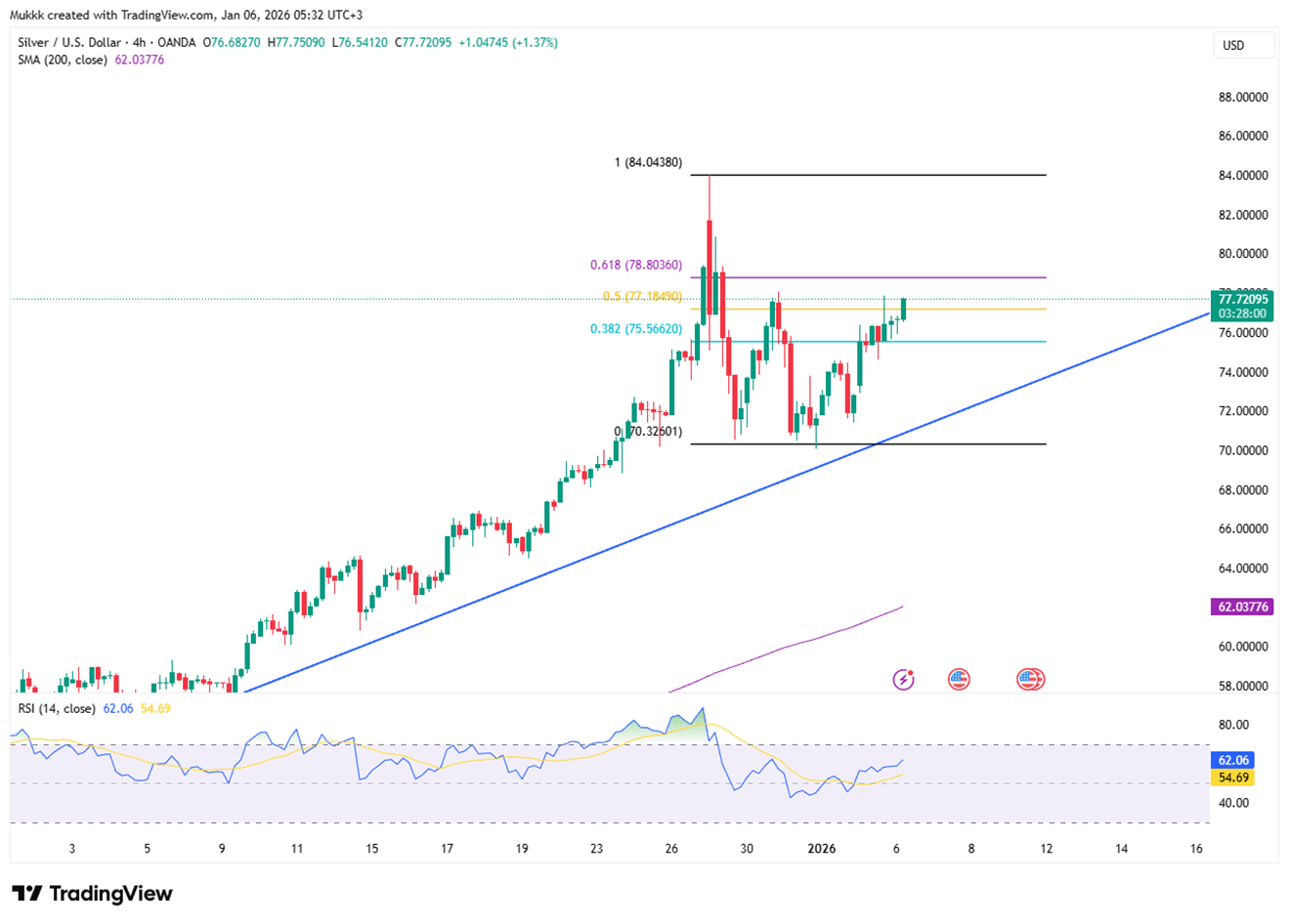 Silver surged above $76.50, trading near $78.55 on Tuesday as geopolitical instability in Venezuela sparked a flight to safety. Investor caution has intensified following the U.S. capture of Nicolás Maduro and signals of further military involvement. Beyond safe-haven demand, silver remains supported by expectations of U.S. rate cuts later this year. Markets are now pivoting toward Friday’s jobs report for clearer direction on the Federal Reserve’s next move.