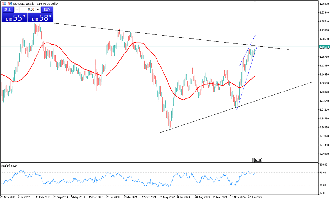 The euro climbed above $1.18, its highest since September 2021, supported by strong Eurozone sentiment and broad dollar weakness ahead of expected Fed cuts. Markets price at least a 25 bps reduction as the Fed balances weak labor data with inflation. The ECB held rates steady, with officials warning of risks from tariffs, services inflation, food prices, and fiscal pressures.