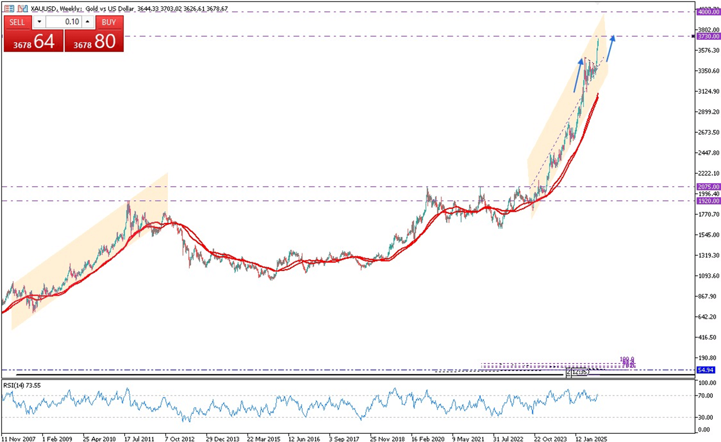 Gold is currently facing resistance around $3,700, with strong support near $3,650.