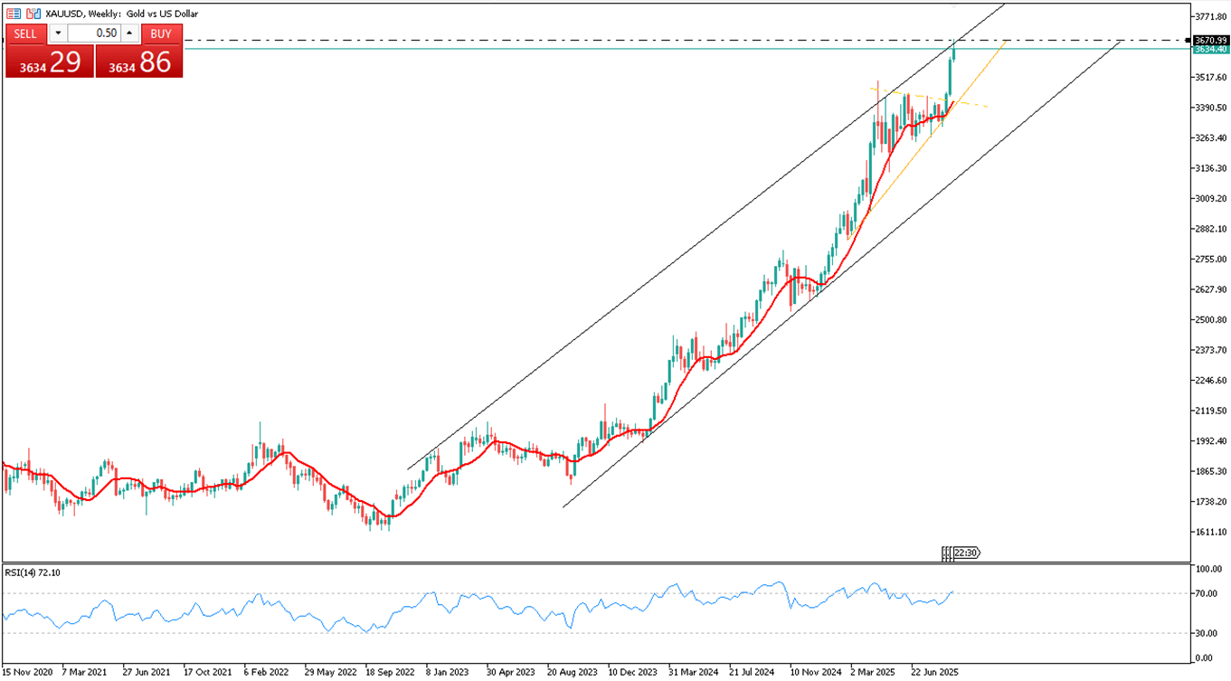 Gold is currently facing resistance around $3,670, with strong support near $3,615.