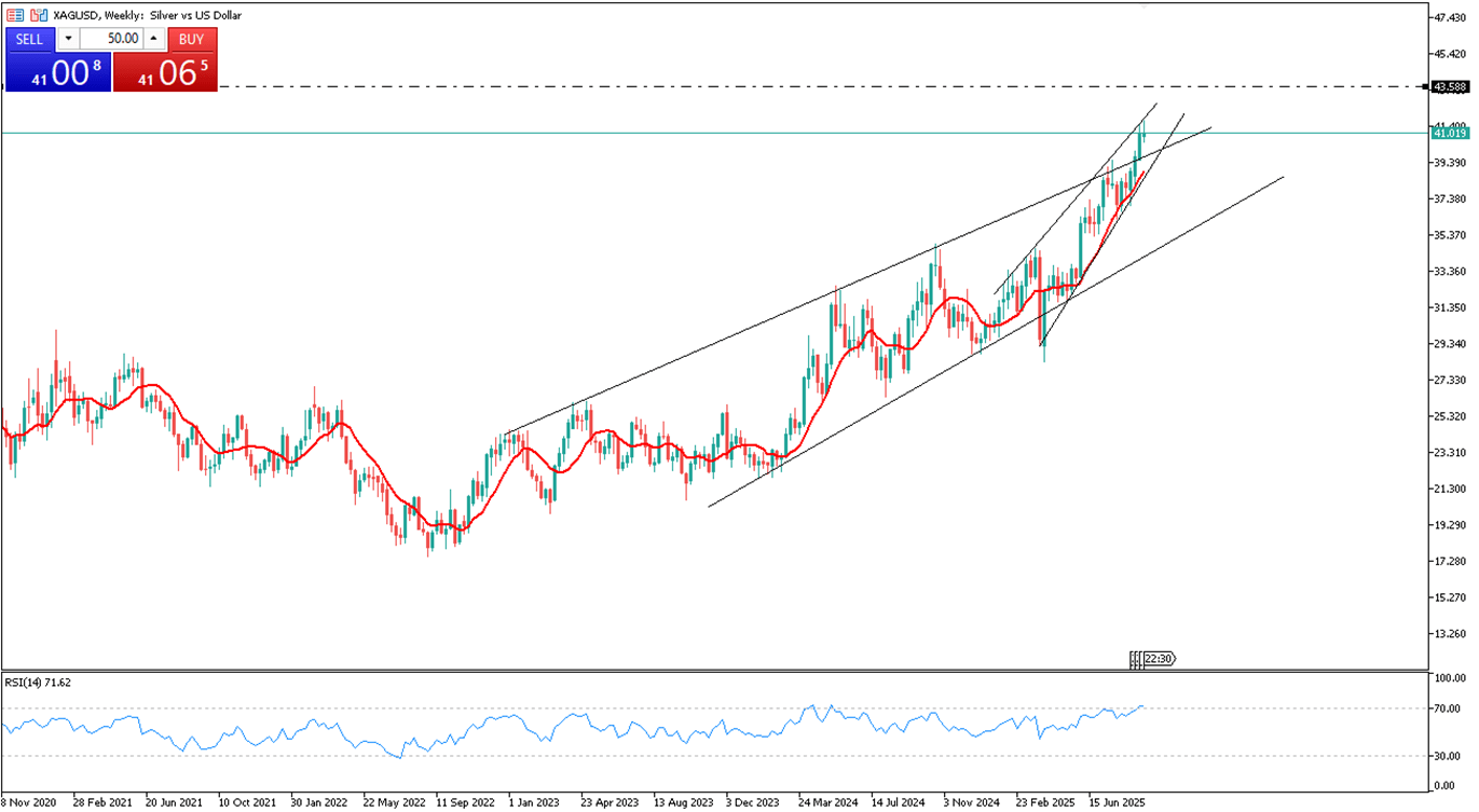 Silver rose toward $41 in Wednesday’s Asian session, supported by a weaker US Dollar and geopolitical risks after Israel reportedly struck Hamas leaders in Doha. Safe-haven demand strengthened further as annual revisions to US Nonfarm Payrolls showed a 911,000-job drop, pointing to a weaker labor market and increasing Fed cut expectations. Markets now await US PPI data for direction.
