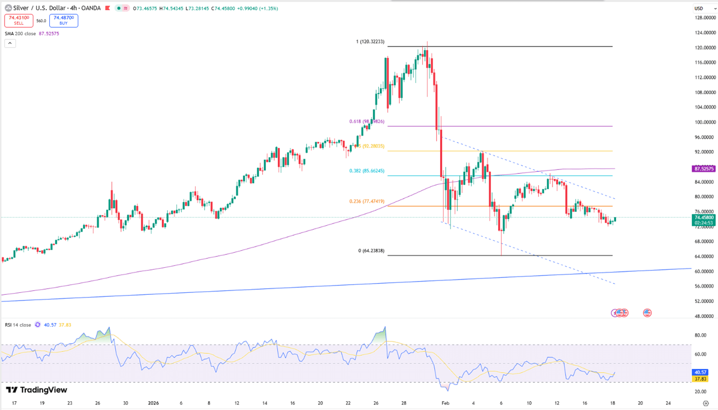 Silver climbed to approximately $74 per ounce on Wednesday, snapping a two-day losing streak as buyers entered the market ahead of the Federal Reserve’s January meeting minutes. Despite recent hawkish comments suggesting rates may stay steady for now, investors still anticipate multiple cuts later in 2026 if inflation nears the 2% target. This outlook generally favors non-yielding assets like silver. While earlier dollar strength and softening geopolitical tensions previously dampened safe-haven appeal, markets are now awaiting upcoming U.S. GDP and PCE data for further direction.