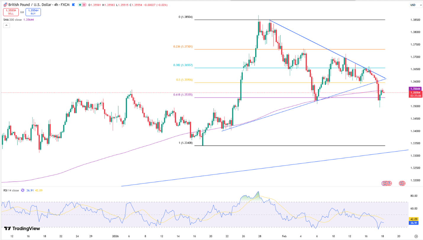 The British pound fell below $1.36 on Wednesday, reaching its weakest point since February 5. New labor market data showed average weekly earnings (including bonuses) rose by only 4.2% in the quarter ending December, missing forecasts and marking the slowest pace since mid 2024. Meanwhile, unemployment climbed to 5.2%, its highest level since early 2021. This cooling trend in wage growth and rising joblessness has strengthened market expectations for Bank of England rate cuts.