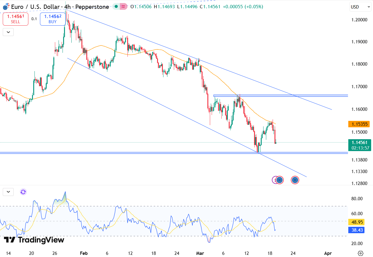 EUR/USD remained stable around the 1.1550 level as the US dollar steadied while investors adopted a cautious stance ahead of the Federal Reserve’s policy announcement. The Fed kept its benchmark interest rate unchanged within the 3.50%–3.75% range in March. Meanwhile, the European Central Bank is also anticipated to leave its deposit rate unchanged at 2.0% during Thursday’s meeting.