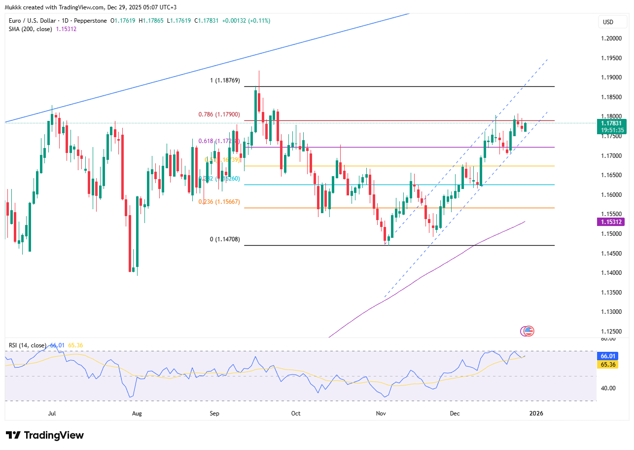 The euro maintained its position above $1.17 during a quiet holiday week, staying near its highest level since late September. This strength is driven by diverging central bank strategies; the ECB held rates steady for a fourth meeting, indicating a prolonged pause supported by a better growth outlook and economic durability. Simultaneously, cooling US inflation has helped bets that the Federal Reserve will lower rates next year, providing the single currency with extra support.