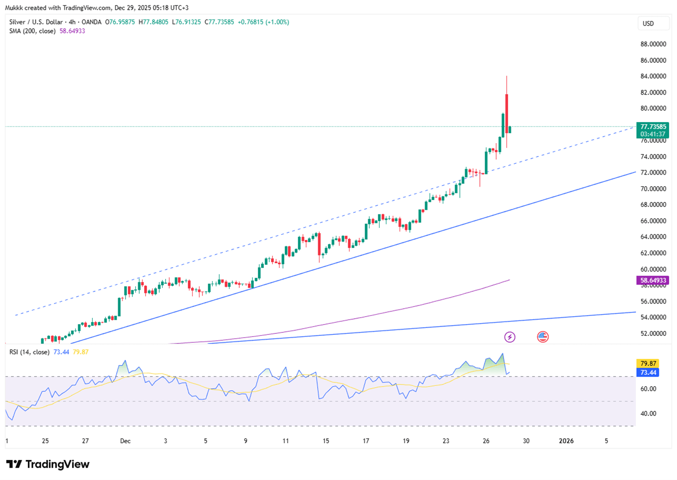 Silver prices dropped over 3% toward $77 per ounce on Monday as traders took profits after a strong year-end surge to a peak near $81. Market sentiment shifted following President Donald Trump’s comments on progress toward a Ukraine peace agreement, even if a final resolution remains distant. Despite this retreat, silver is poised for a significant annual gain, supported by supply deficits, heavy investment, and anticipation of 2026 US rate cuts.