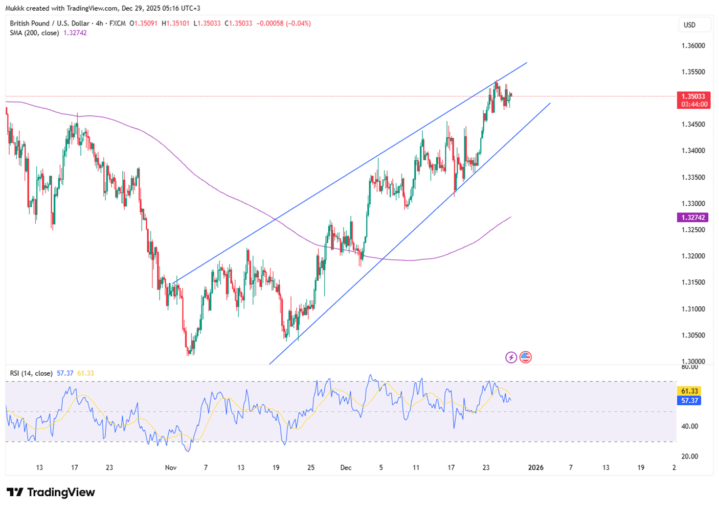 GBP/USD rose past 1.3500 on Monday, bouncing back from initial lows as a softer US dollar reflected expectations of further Federal Reserve easing in 2026. Market attention has turned to the forthcoming FOMC December minutes for insight into future US policy. Concurrently, the Bank of England’s restrained approach marked by a close rate cut vote and ongoing inflation indicates a slow path toward lower rates, which continues to support the pound's strength.