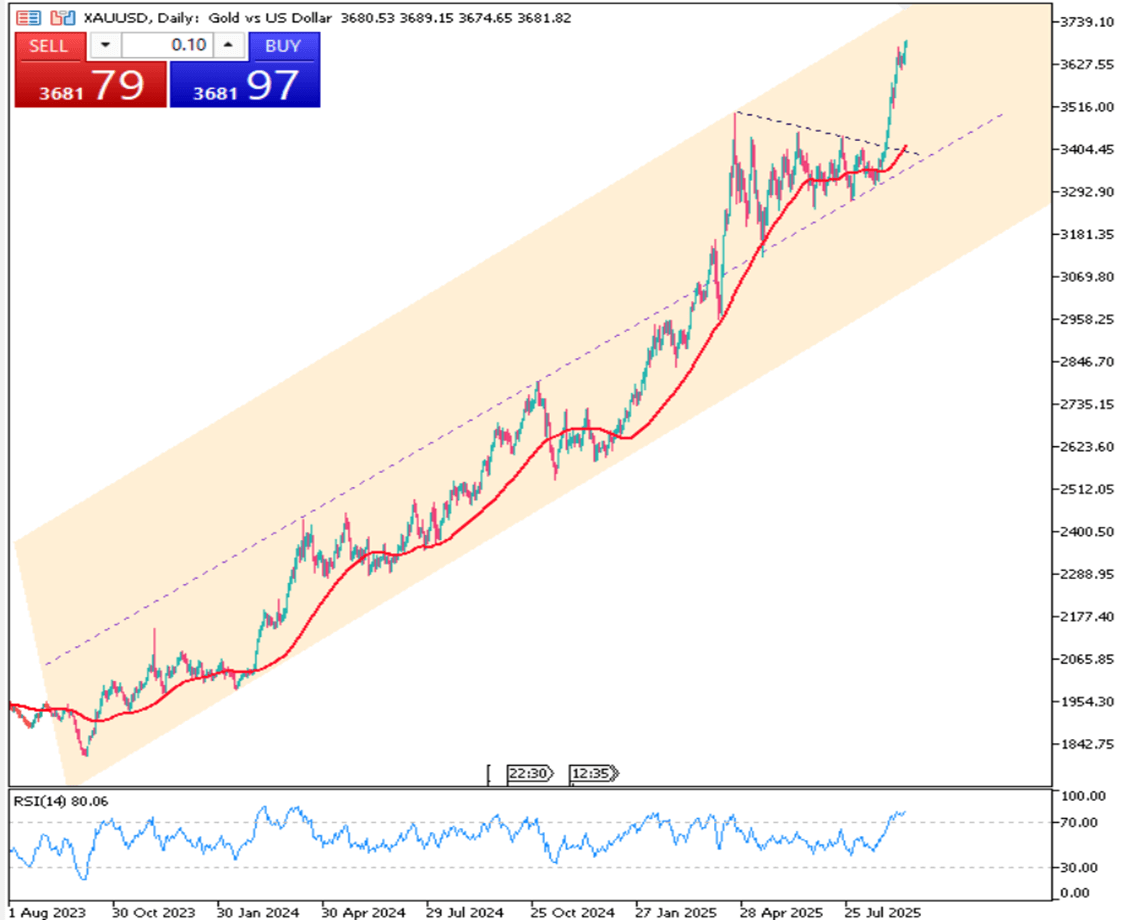 Gold is currently facing resistance around $3,700, with strong support near $3,650.