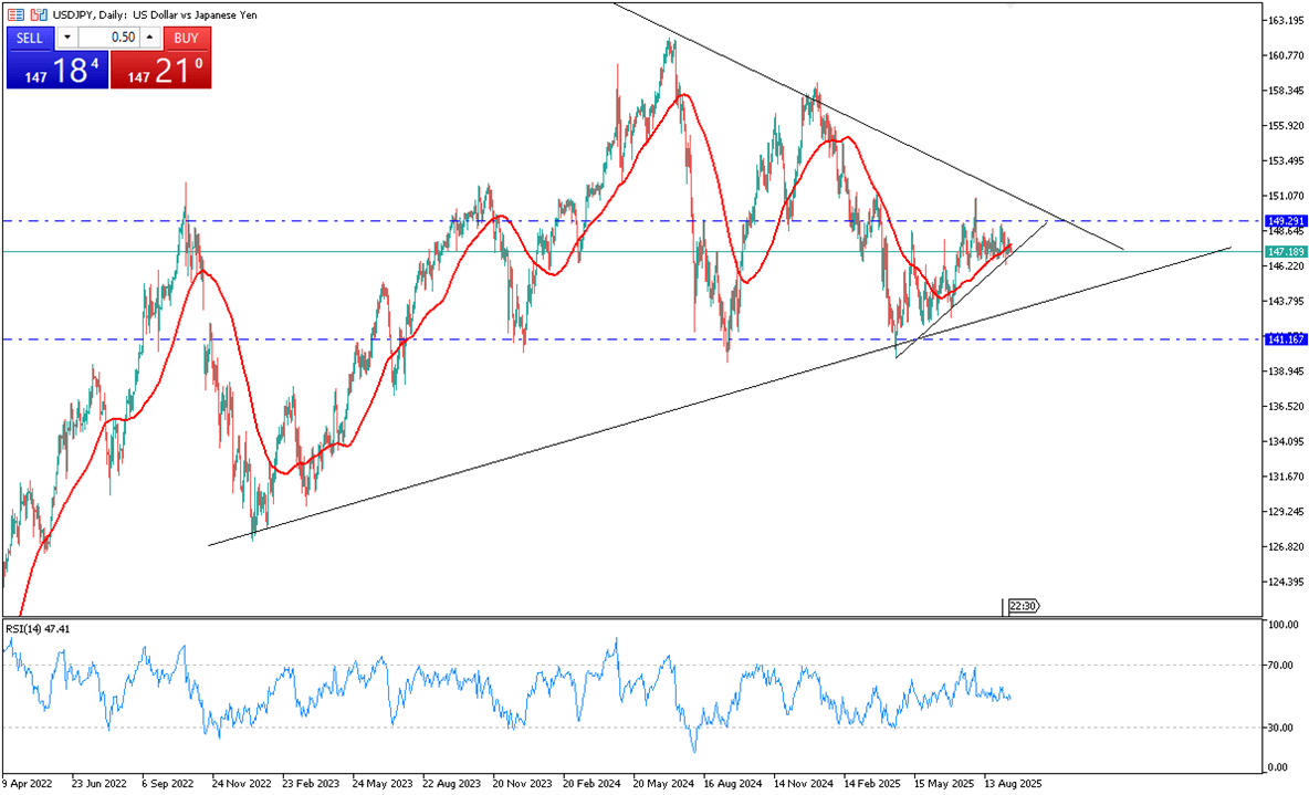 The yen climbed toward 147 per dollar Tuesday, extending gains as the U.S. dollar weakened ahead of the Fed’s expected 25 bps cut. Markets see about 67 bps of easing by year-end on labor and inflation concerns. The BoJ is set to hold its 0.5% rate while monitoring U.S. tariffs and soft domestic data, with core inflation forecast to slip to 2.7%.