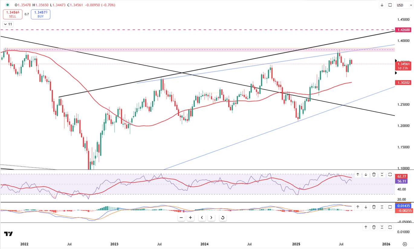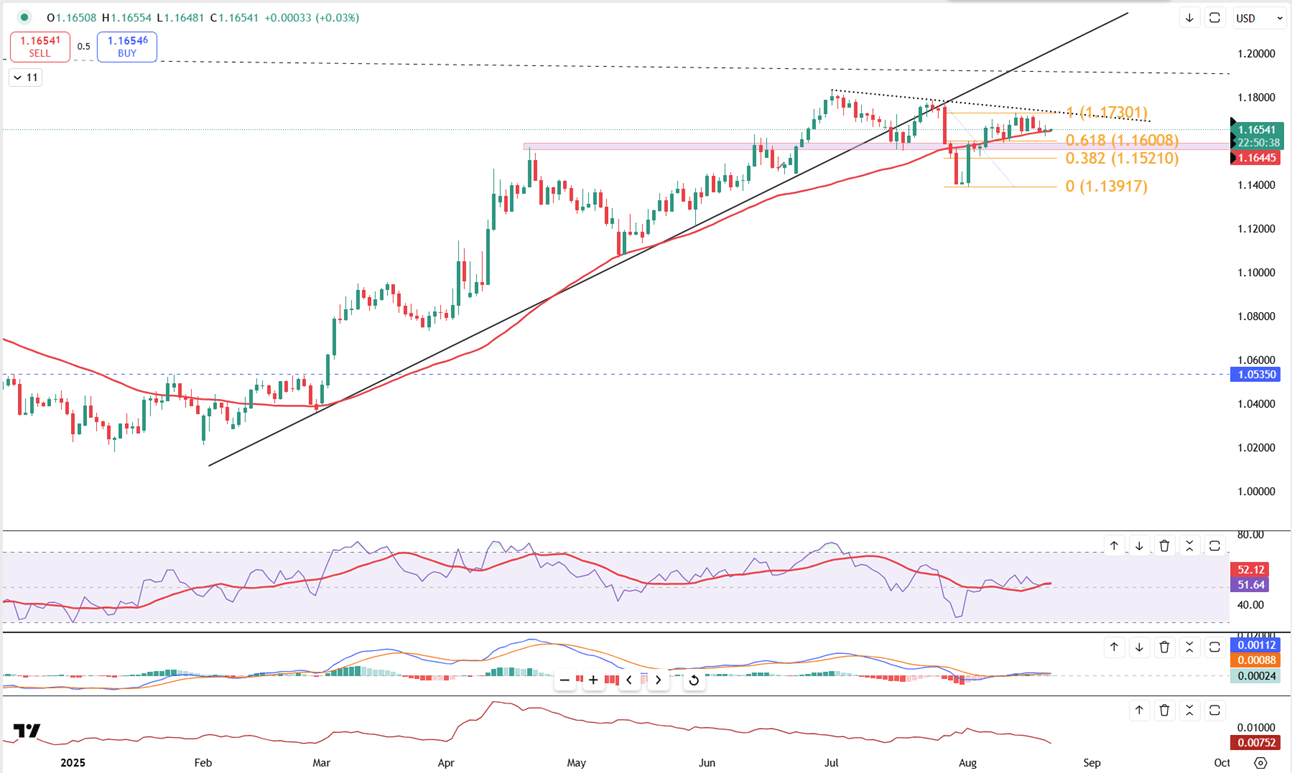 In Europe, July inflation in the Eurozone remained unchanged as ECB President Christine Lagarde warned of persistent uncertainty and weaker Q4 growth. Meanwhile, optimism over U.S.–Ukraine talks faded after Kremlin remarks, weighing slightly on the euro.