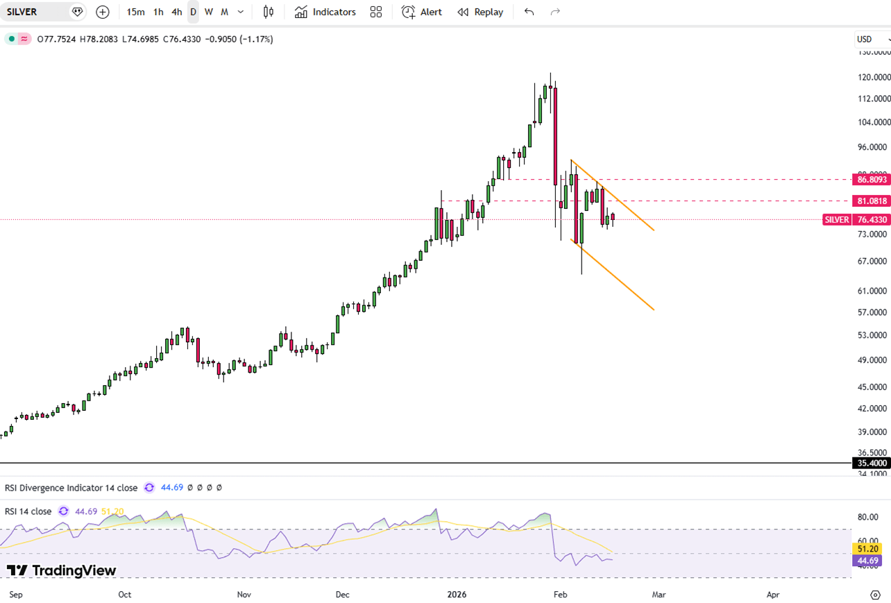 Silver prices declined toward the $75 mark to start the week, as softer U.S. inflation data failed to convince markets of a near-term Federal Reserve pivot. With interest rates likely to remain steady through April, the metal faces pressure from a stronger dollar. However, potential for military escalation between the U.S. and Iran continues to linger. This geopolitical risk could reinvigorate safe-haven buying, providing a necessary cushion for precious metals despite the current lack of dovish monetary signals.