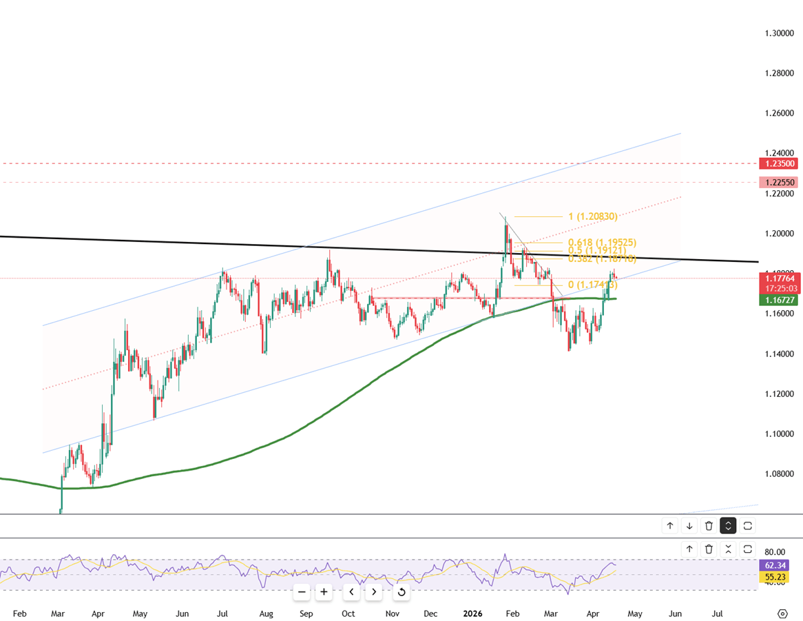 EUR/USD maintained its position near the 1.18 level as growing optimism over potential US–Iran peace progress supported the pair. This upward support was reinforced by market expectations for prolonged ceasefire discussions and upcoming diplomatic sessions, both of which continued to pressure the US dollar.