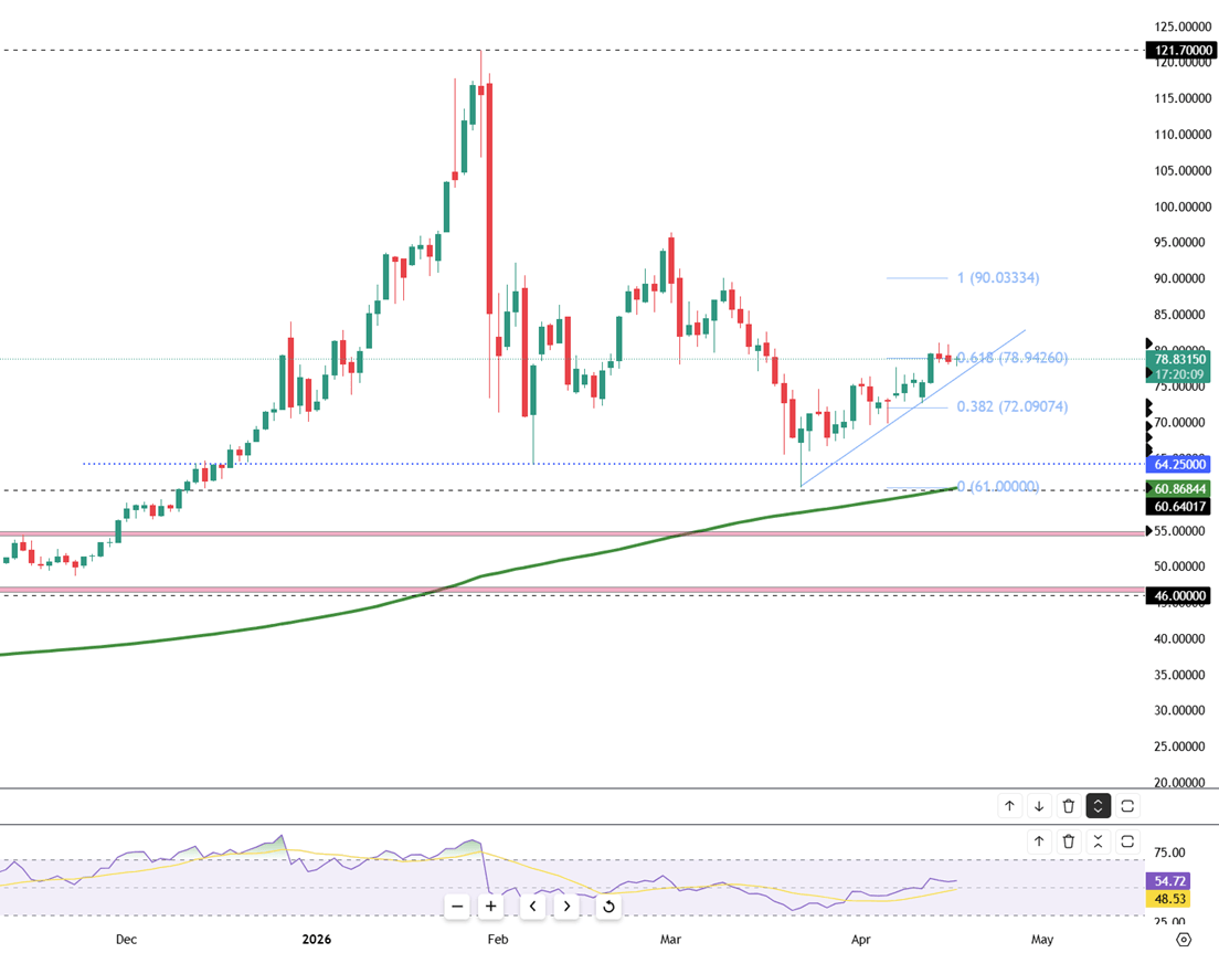 Silver remained stable around $79 on Friday, positioned for its fourth weekly advance. Although deal specifics remain unconfirmed, growing confidence in a potential US–Iran ceasefire has cooled inflation worries and reduced expectations for further central bank rate hikes.