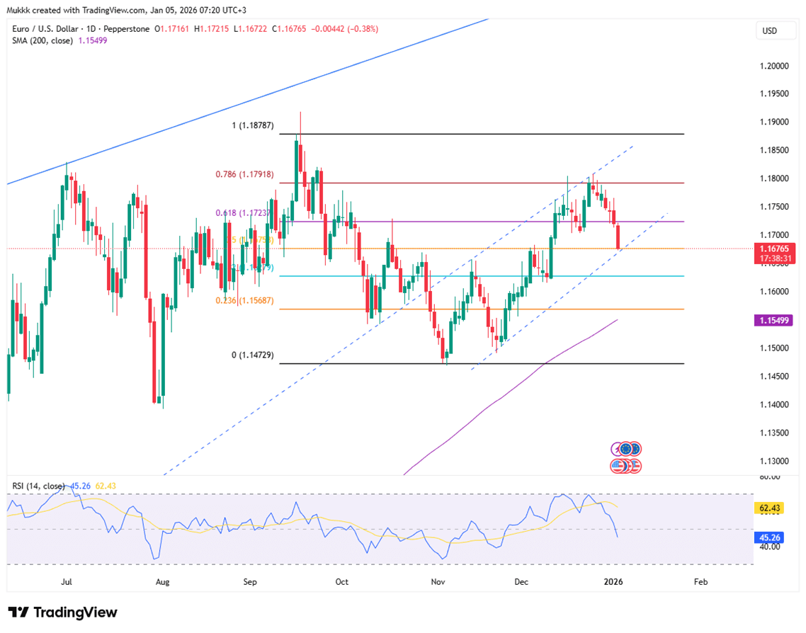 The euro held near recent highs after a strong 2025, supported by steady ECB policy and expectations of a more dovish Federal Reserve later this year. The yen weakened to multi-week lows as dollar strength persisted, while gold and silver surged on rising geopolitical tensions tied to Venezuela. Sterling remained stable after its best annual gain in years, underpinned by expectations that the BoE will ease more slowly than the Fed.