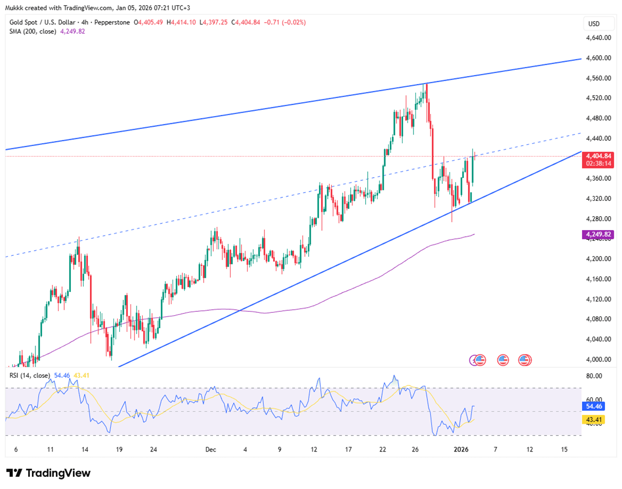 Gold rose over 1% on Monday, trading above $4,400 per ounce as investors sought safe-haven protection. This rally follows the U.S. ouster of Venezuelan President Nicolás Maduro, an event that has heightened geopolitical uncertainty and dampened risk sentiment. While markets await Friday’s nonfarm payrolls report for interest rate clues, gold continues to build on its best year since 1979. This momentum is sustained by ongoing monetary easing, strong central bank buying, and significant inflows into gold-backed ETFs.
