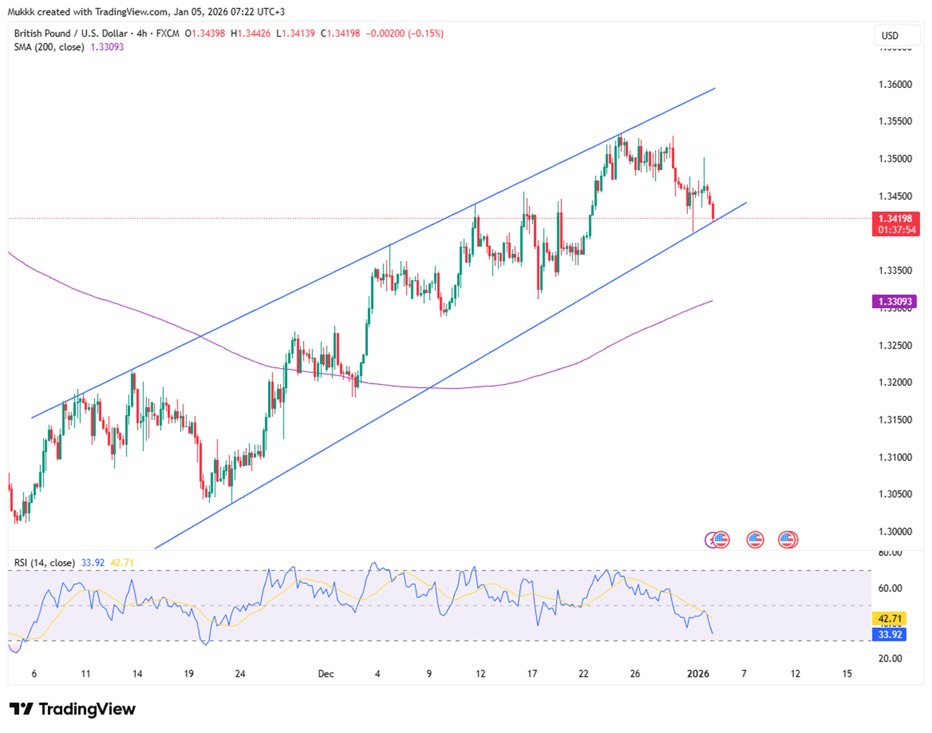 From a technical view, support stands near 1.3380, with resistance around 1.3470.