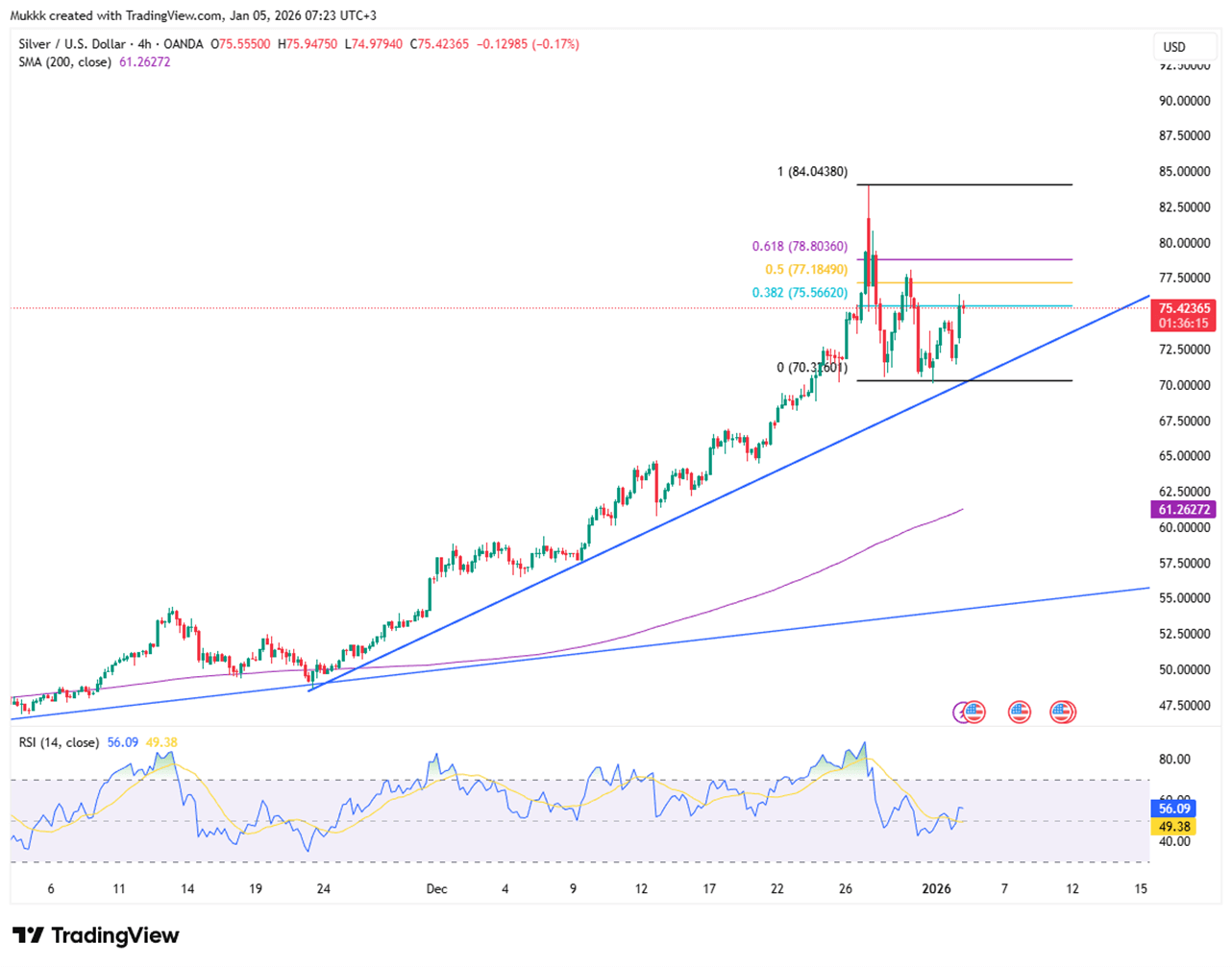| R1: 76.50 | S1: 74.50 |