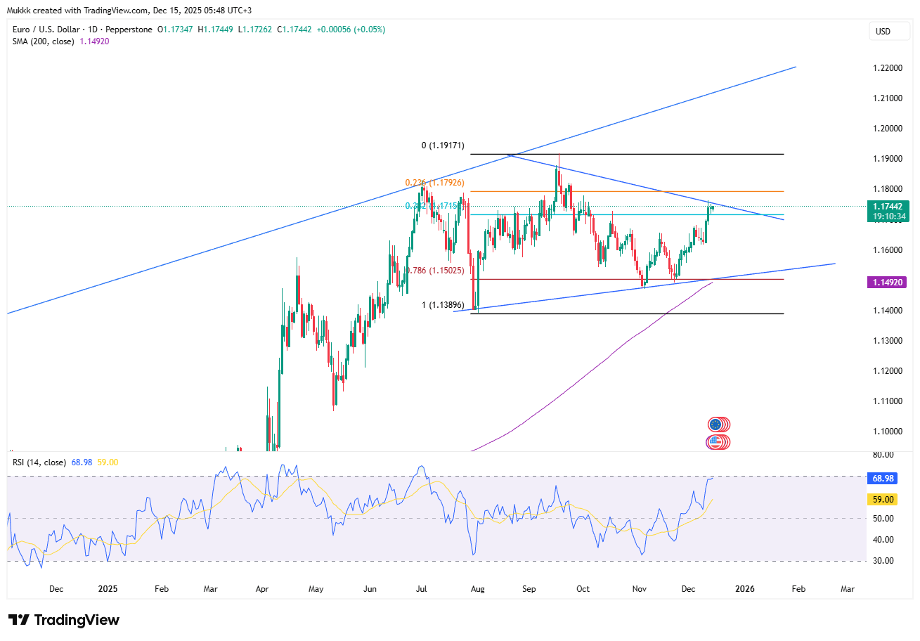 The euro held above 1.17 near multi-month highs as stable ECB policy, improved growth forecasts, and softer US inflation supported the single currency.