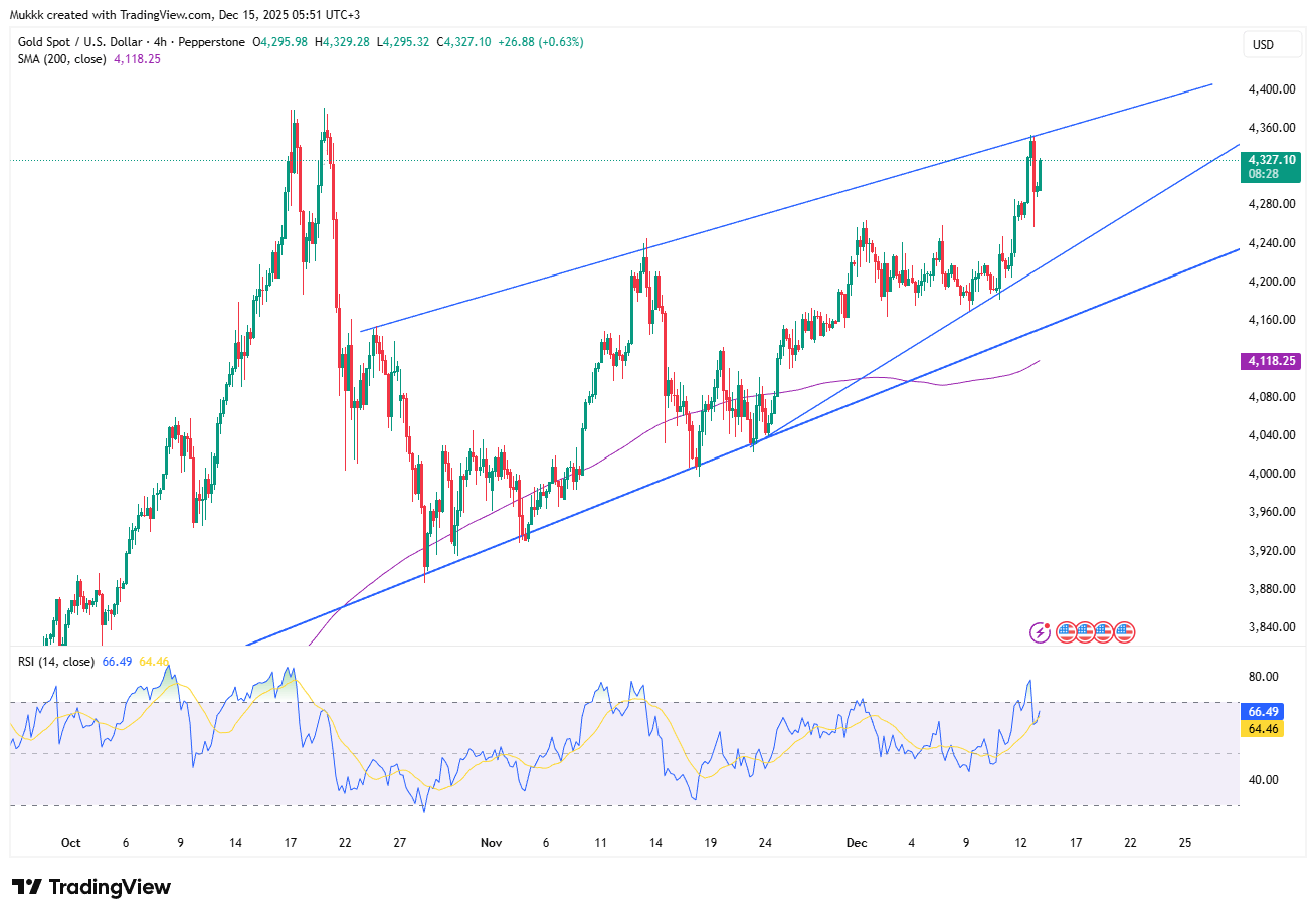 Gold rose to around $4,320 per ounce on Monday, nearing record highs as investors positioned ahead of a heavy U.S. data week, with the jobs report on Tuesday and inflation figures on Thursday set to shape Fed expectations. The move follows the Fed’s third 25bp cut this year, though the decision was split, with dissenting officials arguing inflation remains elevated and signaling caution over how far rate cuts may extend into 2026.