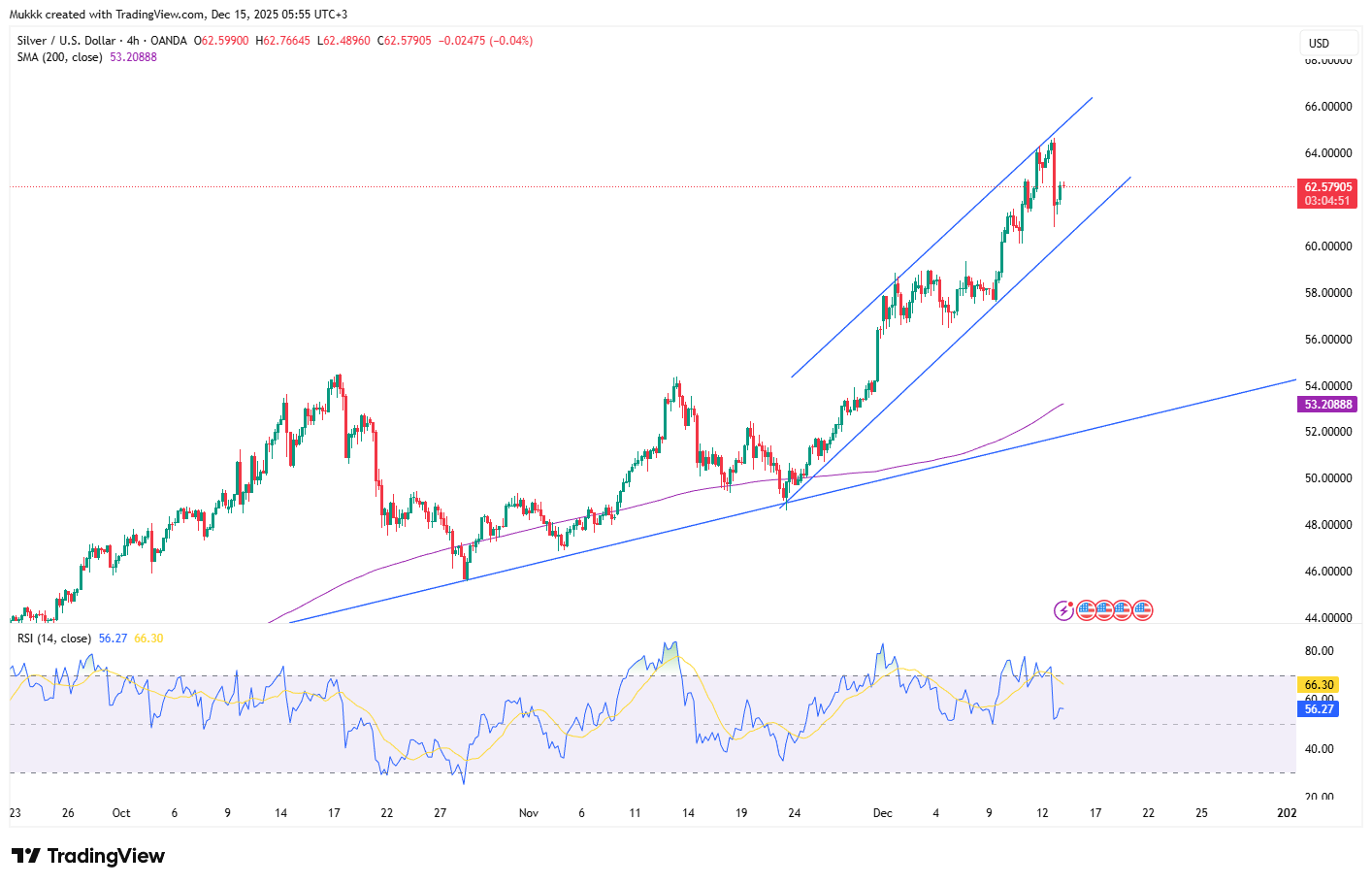 Silver traded around $62.5 per ounce on Monday, remaining close to record highs and extending its year-to-date gains beyond 100%. The ongoing rally has been supported by tightening inventories, resilient industrial demand, and silver’s designation as a critical mineral in the United States. Demand has been particularly strong from solar energy, electric vehicles, and data center infrastructure.