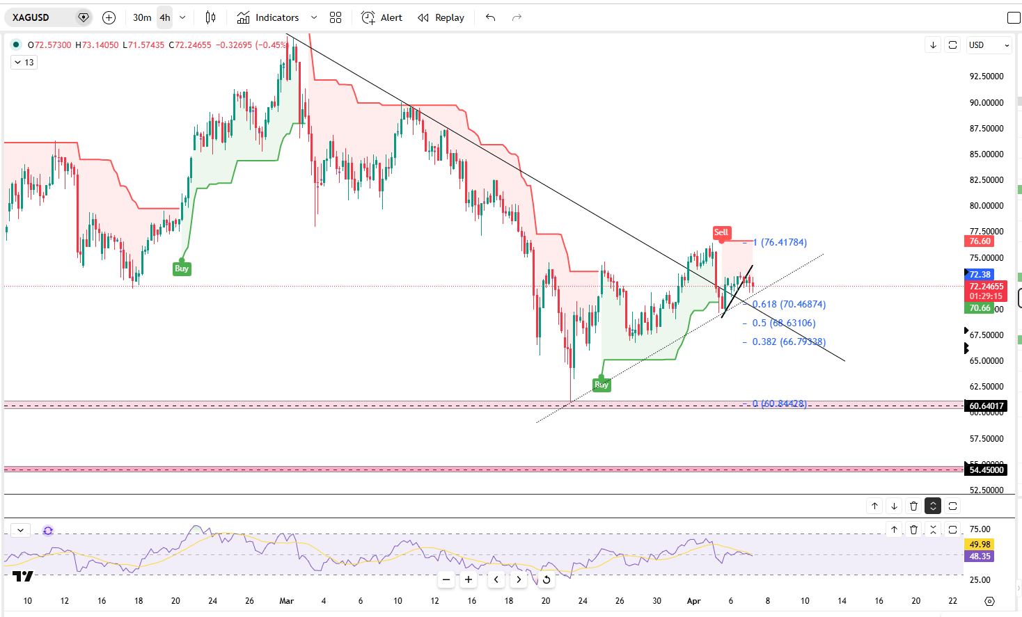 Silver stabilized at $72.50 as markets weighed escalating geopolitical risks. Prices paused following President Trump’s ultimatum to Iran: meet specific demands, including reopening the Strait of Hormuz by Tuesday night, or face strikes on power plants and bridges.