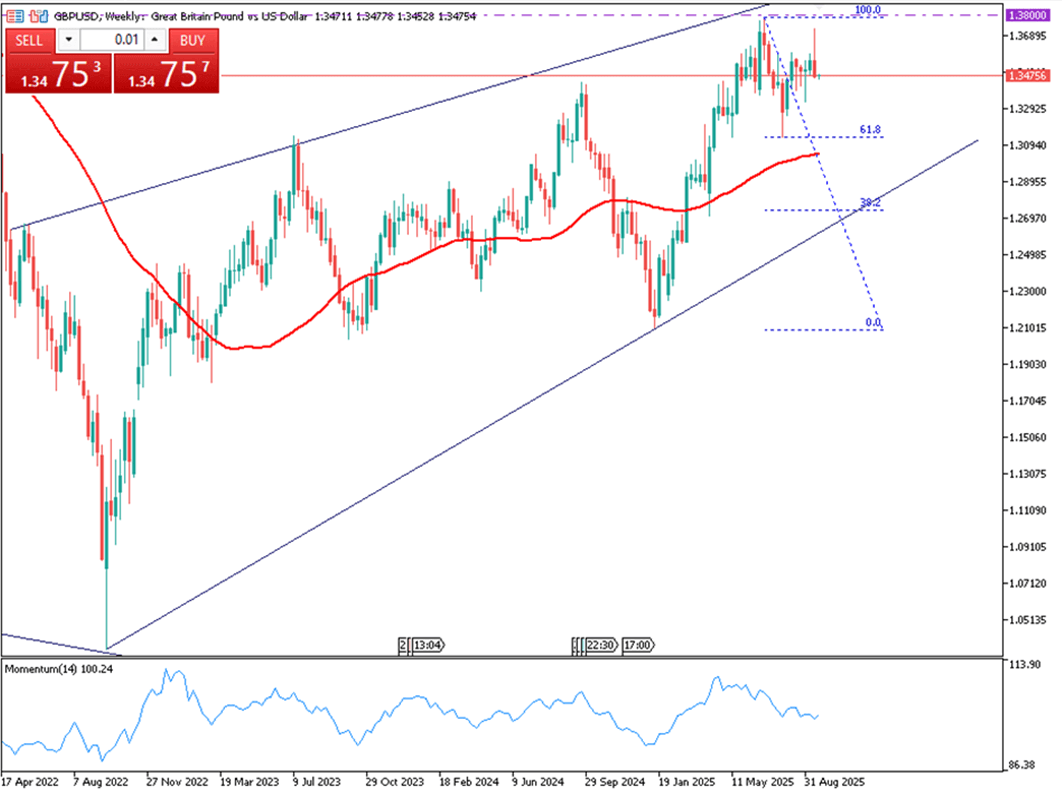 GBP/USD stayed under pressure in Monday’s Asian session, extending losses for a fourth consecutive day and trading near 1.3460. The pair is edging toward a breakdown below its ascending channel, signaling strengthening bearish momentum.