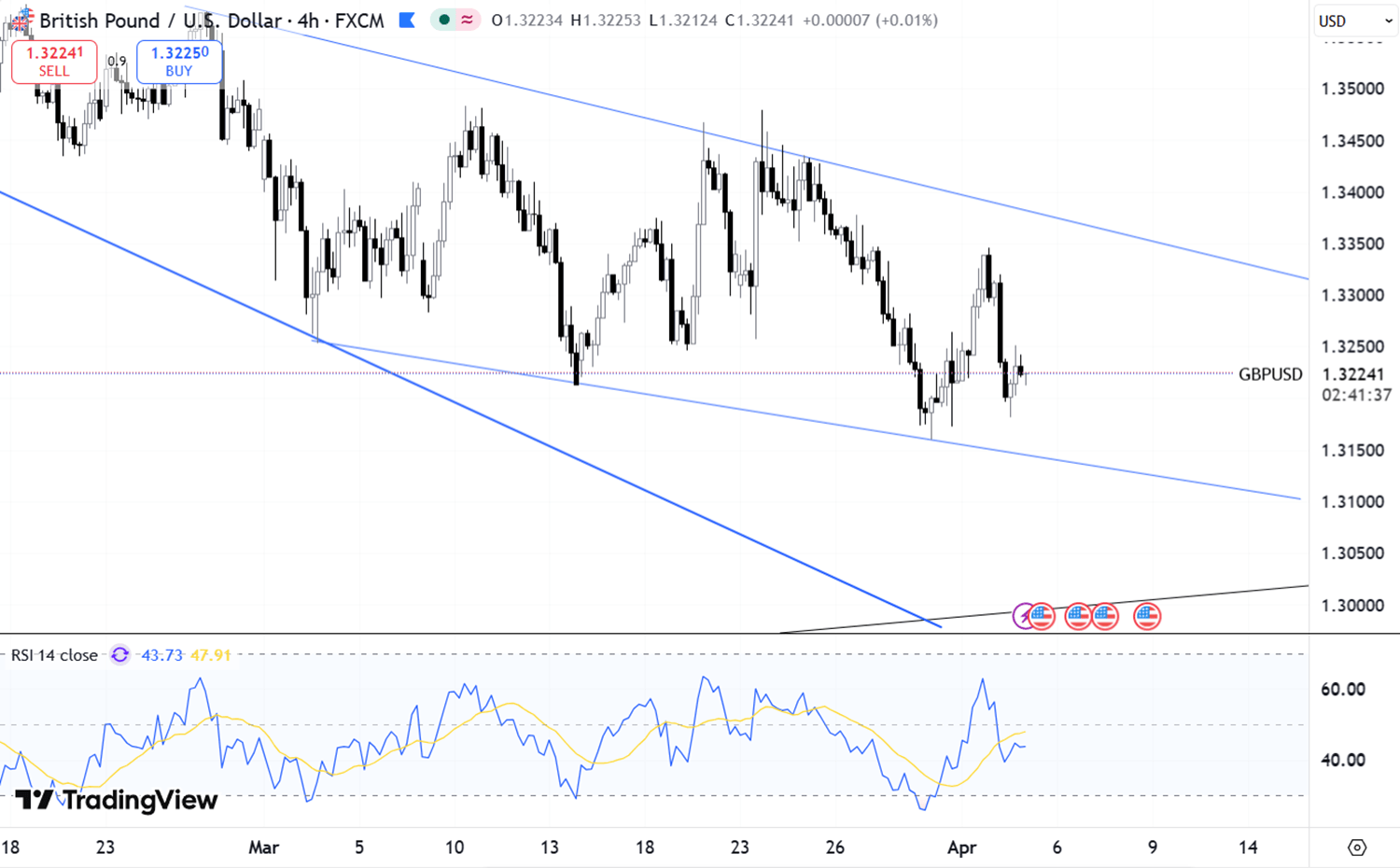 GBP/USD remains under significant pressure, dropping 0.65% on Thursday to settle near 1.3220. The pair has now retreated more than 650 pips from its January peak, with the 2026 low of 1.3080 serving as the next major support level. BoE Governor Andrew Bailey has actively countered market rate hike expectations, though traders still price in two increases this year. With US equity markets closed for Good Friday, the upcoming Nonfarm Payrolls report could trigger sharp price swings due to thin liquidity.