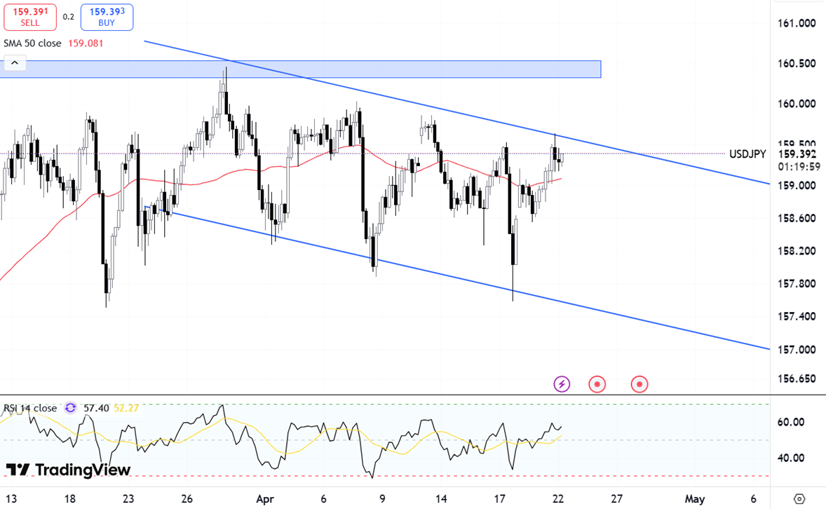 Initial resistance stands at 159.70, while the first support is located at 159.00.