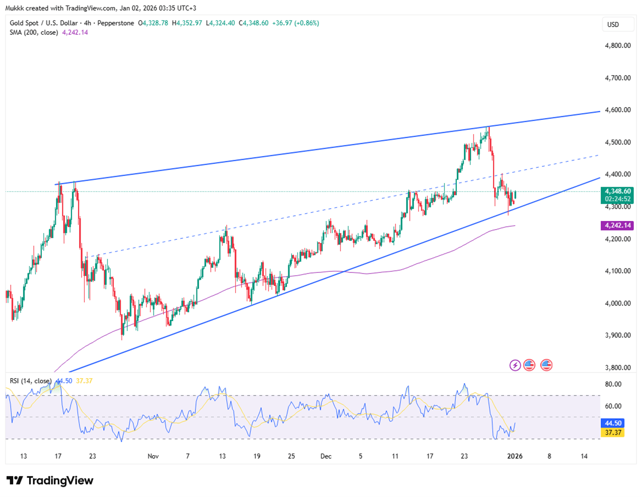 Gold traded near $4,360 per ounce on the first day of 2026, building on its best annual performance in over four decades. After a staggering 65% surge in 2025, the metal continues to be supported by global US tariffs, expectations of lower interest rates, and steady central bank buying. Persistent geopolitical risks and growing ETF inflows also remain key drivers.