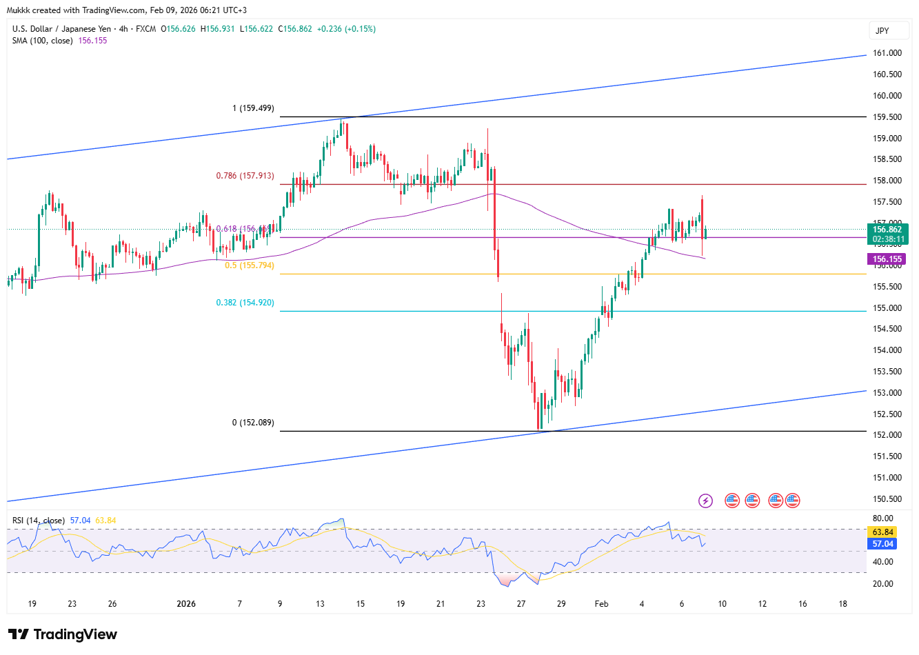 Technically, resistance stands near 157.30, while support is firm at 156.20.