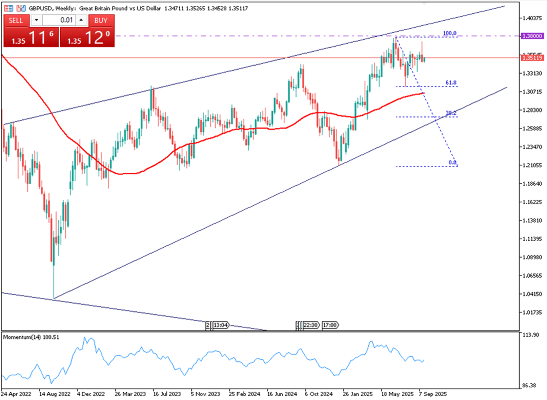 The British pound traded near $1.35, holding close to Friday’s two-week low of $1.346, as investors awaited the S&P Global flash PMI and remarks from Bank of England and Federal Reserve officials. Market focus remains on the UK’s fiscal outlook after data showed public sector net borrowing rose sharply to almost £18 billion in August, well above the forecast £12.5 billion.