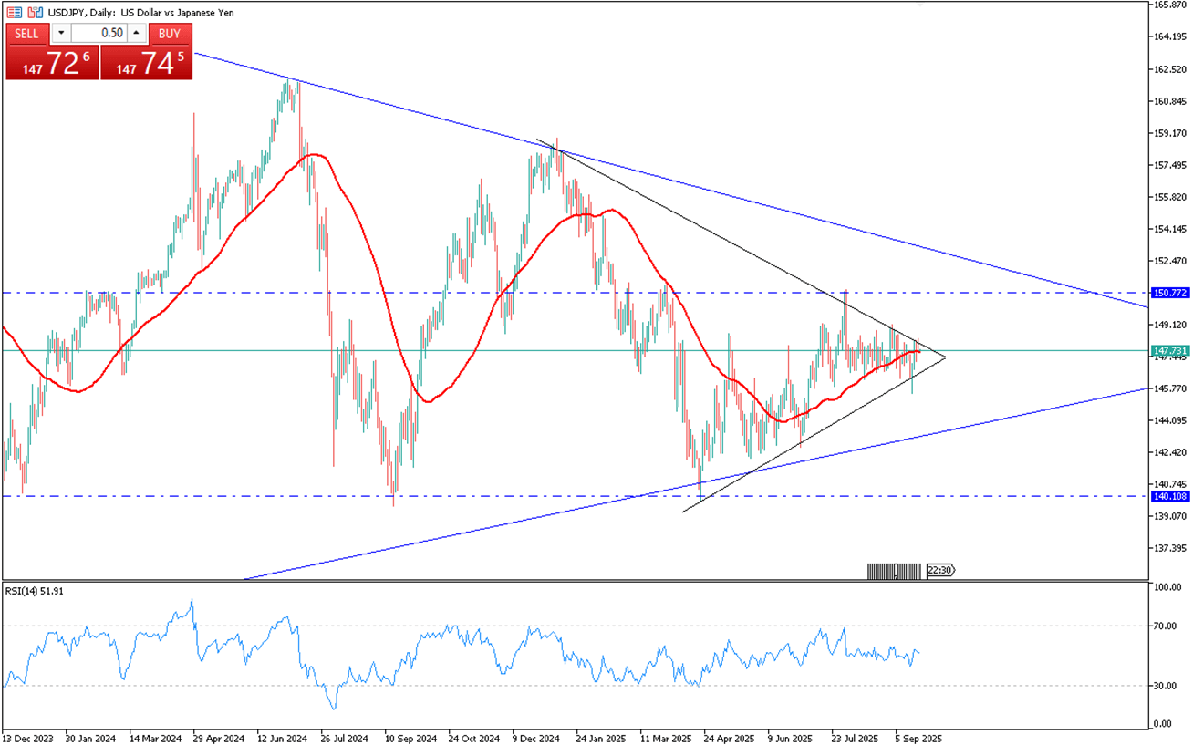 The Japanese yen strengthened to around 147.5 per dollar on Tuesday, rebounding from two-week lows as the U.S. dollar eased amid renewed reassessment of the Federal Reserve’s policy outlook. Political uncertainty in Washington, including ongoing congressional negotiations to prevent a September 30 government shutdown, also weighed on the greenback. Meanwhile, the Bank of Japan kept its policy rate steady at 0.5% for the fifth consecutive meeting.