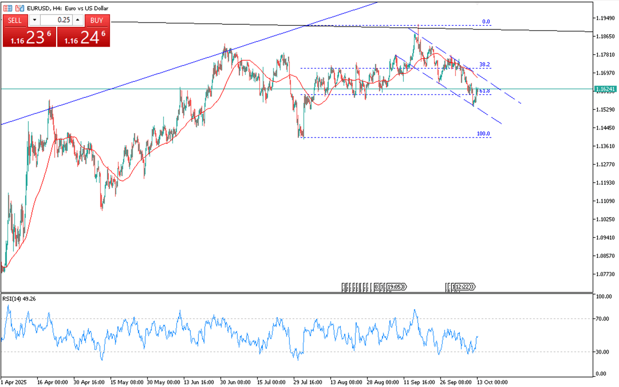 EUR/USD hovered around 1.1620 in Asian trading on Monday after a 0.5% gain, supported by a weaker dollar amid ongoing U.S.–China trade tensions and the extended government shutdown. Trump’s 100% tariff threat and China’s vow to retaliate added uncertainty, while delayed federal paychecks pressured the greenback. The euro found support from easing political tensions in France and ECB minutes that reaffirmed confidence in reaching the 2% inflation goal.