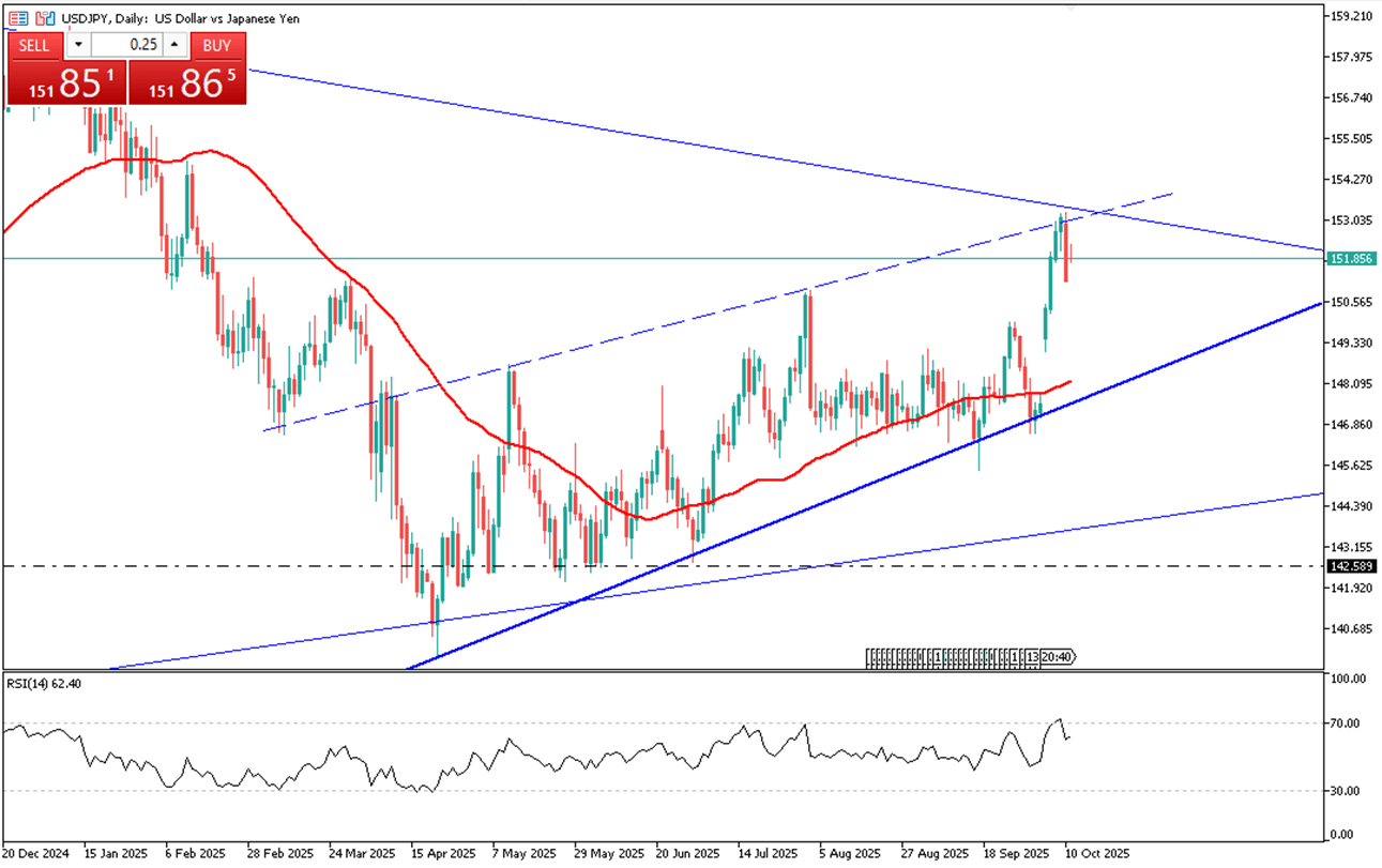 The yen weakened toward 152 amid calmer trade sentiment, while gold surged above $4,040, approaching record highs on renewed safe-haven demand. Sterling steadied near 1.3345 as mixed policy signals from the BoE and Fed limited volatility. Meanwhile, silver rallied past $51, supported by geopolitical risks, tightening supply, and expectations of further Fed rate cuts.