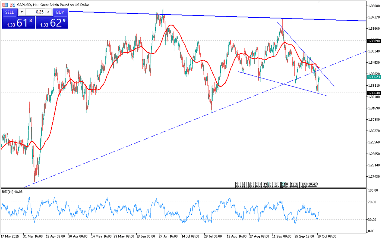 GBP/USD hovered near 1.3345 in early Asian trading on Monday as the dollar strengthened amid U.S.–China trade tensions and the prolonged government shutdown. BoE’s Catherine Mann said policy should stay restrictive to support growth, while UK Treasury’s James Murray ruled out emergency funds for pay rises. Dovish Fed comments citing soft inflation and potential rate cuts limited further dollar gains.