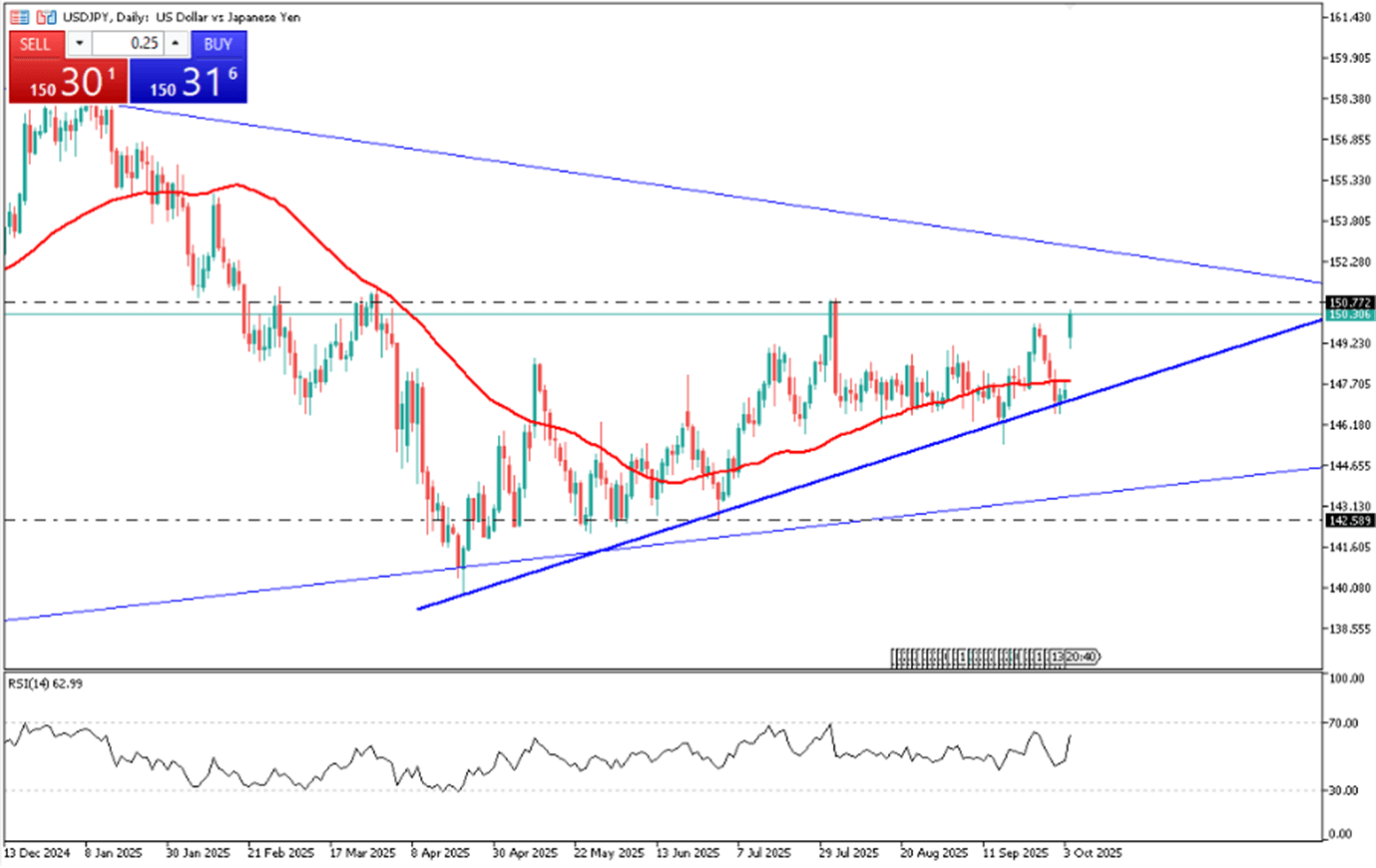 Meanwhile, the yen weakened toward 150.5 per dollar as Japan’s new pro-stimulus leader Sanae Takaichi took office, reinforcing expectations of looser fiscal policy. Gold approached record highs near $3,970 on safe-haven demand amid global unrest and U.S. rate-cut expectations, while silver surged to its highest level since 2011 above $48.3 per ounce. The pound edged lower to $1.3470 as investors weighed persistent U.K. inflation and cautious BoE signals.