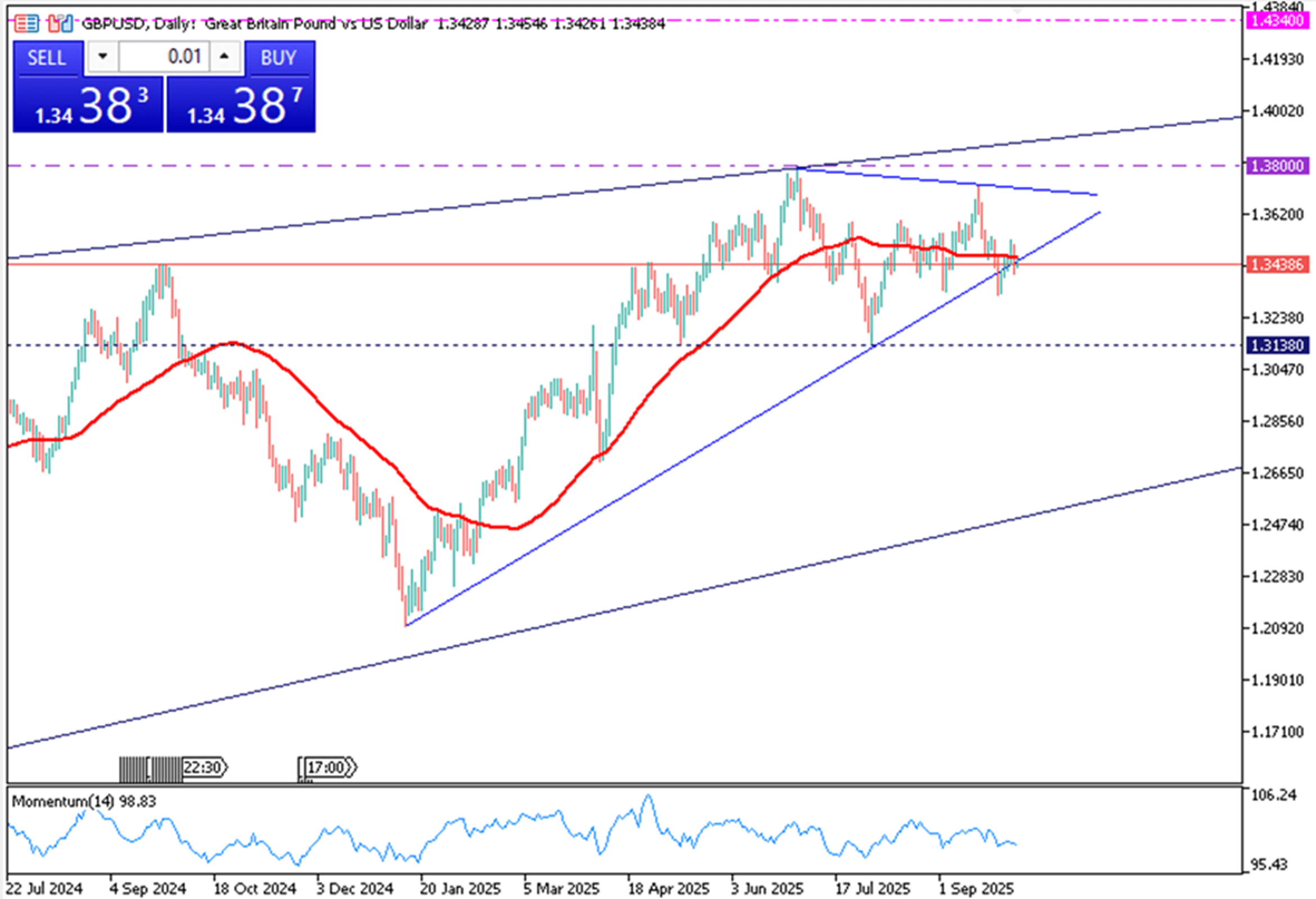 The British pound edged up to around 1.3440 against the US dollar in Friday’s Asian session. GBP/USD advanced as the dollar weakened, pressured by a softer US labor market and the ongoing government shutdown. The Bank of England kept rates unchanged in September, with markets expecting the first cut only in 2026 amid persistent inflation concerns.