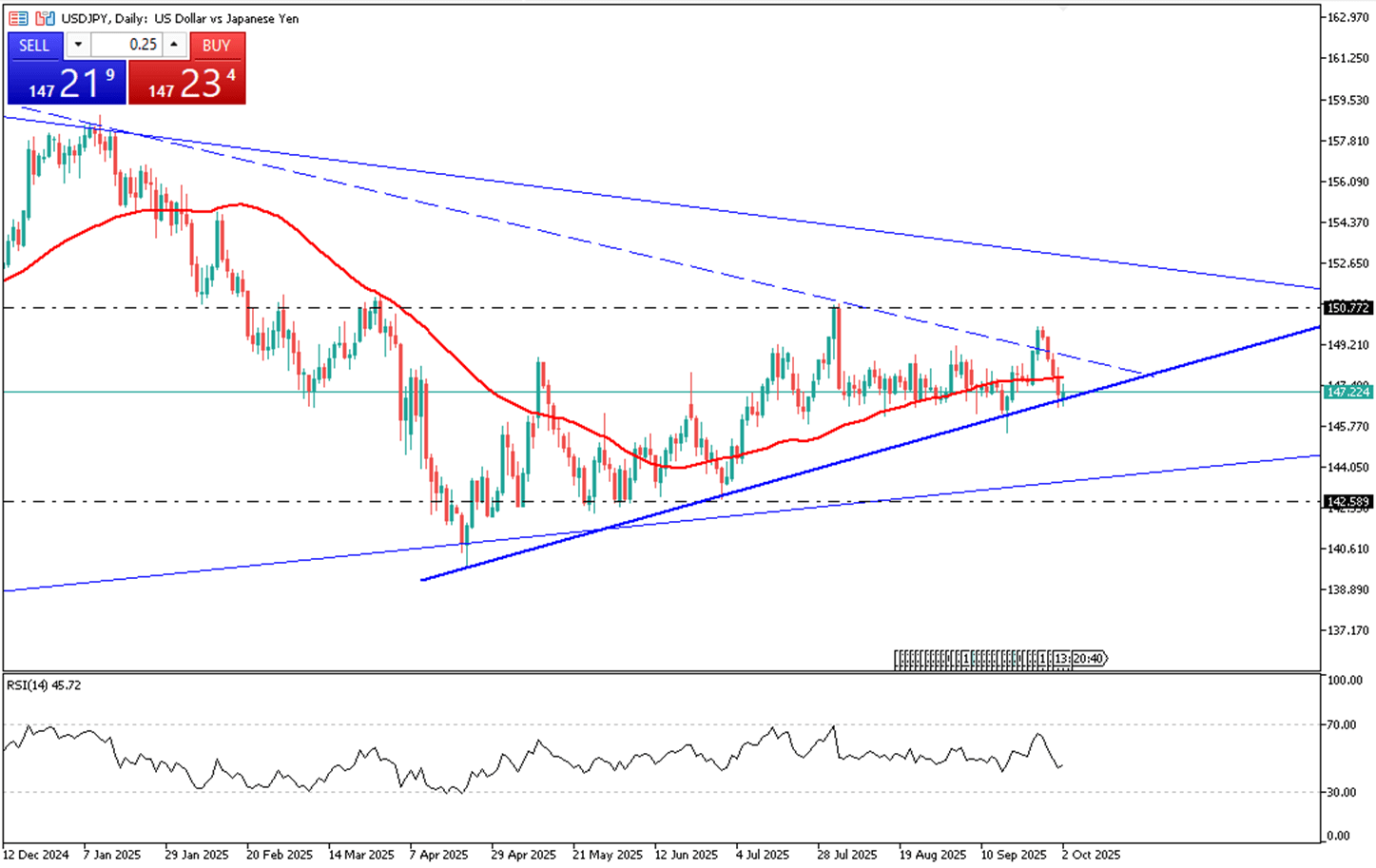 The yen eased to 147.5 per dollar ahead of Japan’s LDP leadership vote, while gold held firm near $3,850 per ounce, extending its safe-haven appeal amid the ongoing U.S. government shutdown. Sterling edged toward $1.3440, supported by a softer dollar, and silver remained in a weekly uptrend, holding close to $47 as Fed cut expectations and supply concerns underpinned demand.