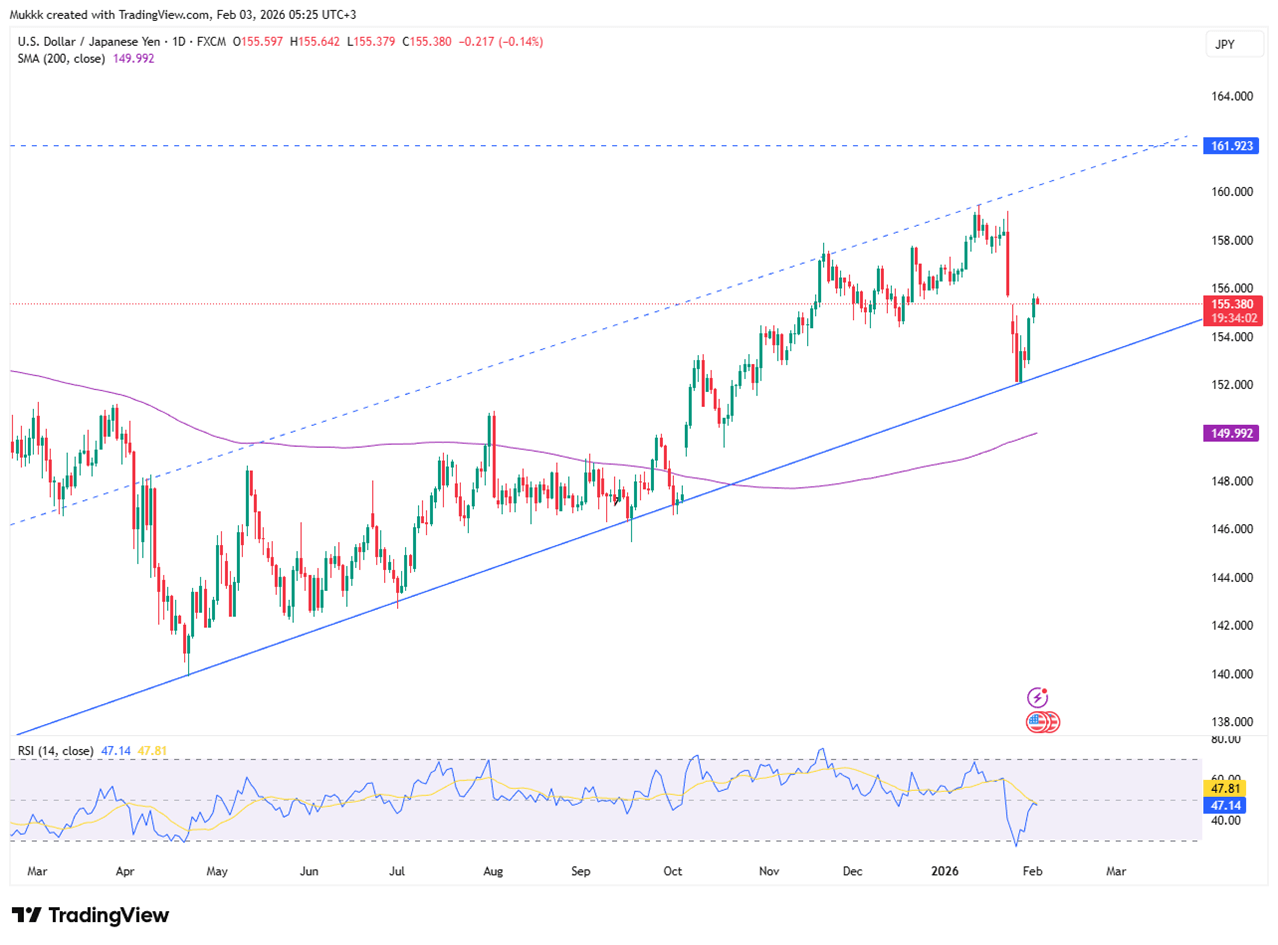 The Japanese yen softened toward 155.5 per dollar on Tuesday, extending its recent decline. The currency faces pressure from strong U.S. data and the nomination of a hawkish Fed Chair, which has fueled dollar strength. In Japan, Prime Minister Sanae Takaichi noted that a weaker yen can help exports. This remark, along with election nerves and hopes for a government spending package, has lowered confidence in the currency.