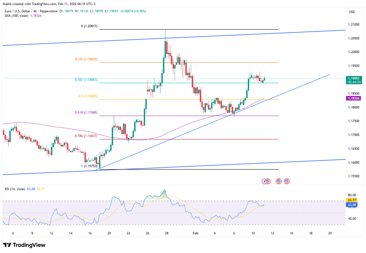 The euro remained firm above $1.19 as investors digested a steady ECB stance and a softer US dollar, with policymakers showing little concern over recent currency strength. The yen extended gains on election-driven optimism and intervention expectations, adding pressure to the greenback. Precious metals stayed supported, with gold holding near a two-week high on rising rate-cut bets and ongoing central bank demand, while silver rebounded as weak US data reinforced expectations for looser monetary policy. Sterling lagged peers amid UK political uncertainty and growing expectations of further Bank of England easing.