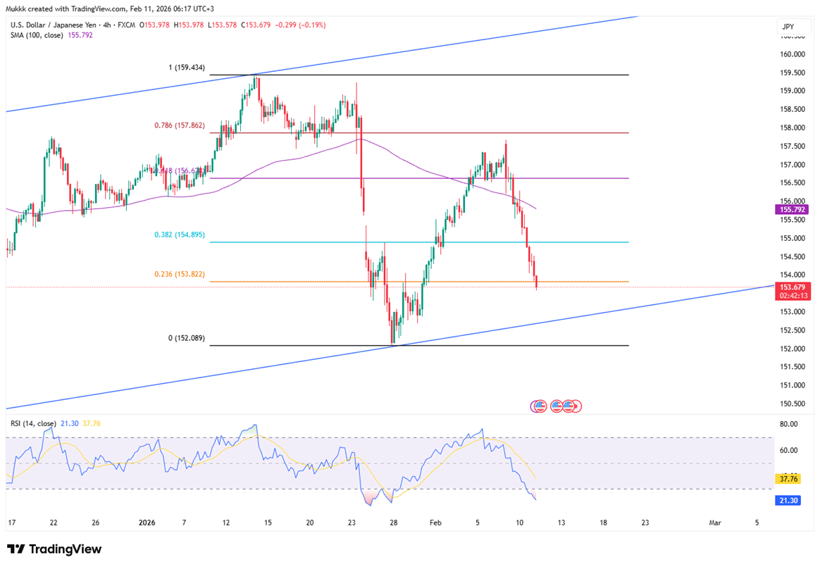 Technically, resistance stands near 154.50, while support is firm at 153.00.